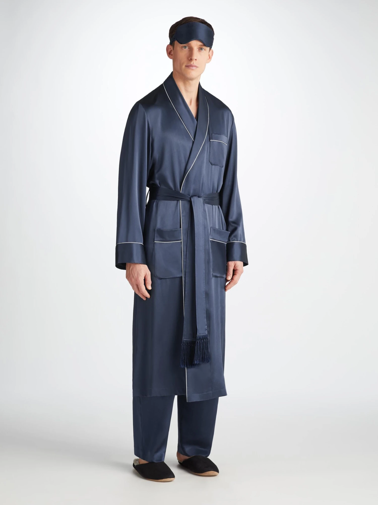 Piped in a complementary navy, the inside is gently padded for a soft and comforting feel, whilst a matching elasticated navy silk strap ensures a secure fit without being constricting on the skin. No more waking up wondering where your mask has disappeared to.
