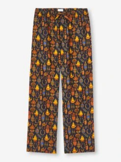 The pyjama top is fastened with buttons and piped in complementary white, while the trousers have an elasticated waist for ease and comfort.
