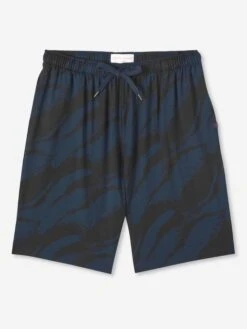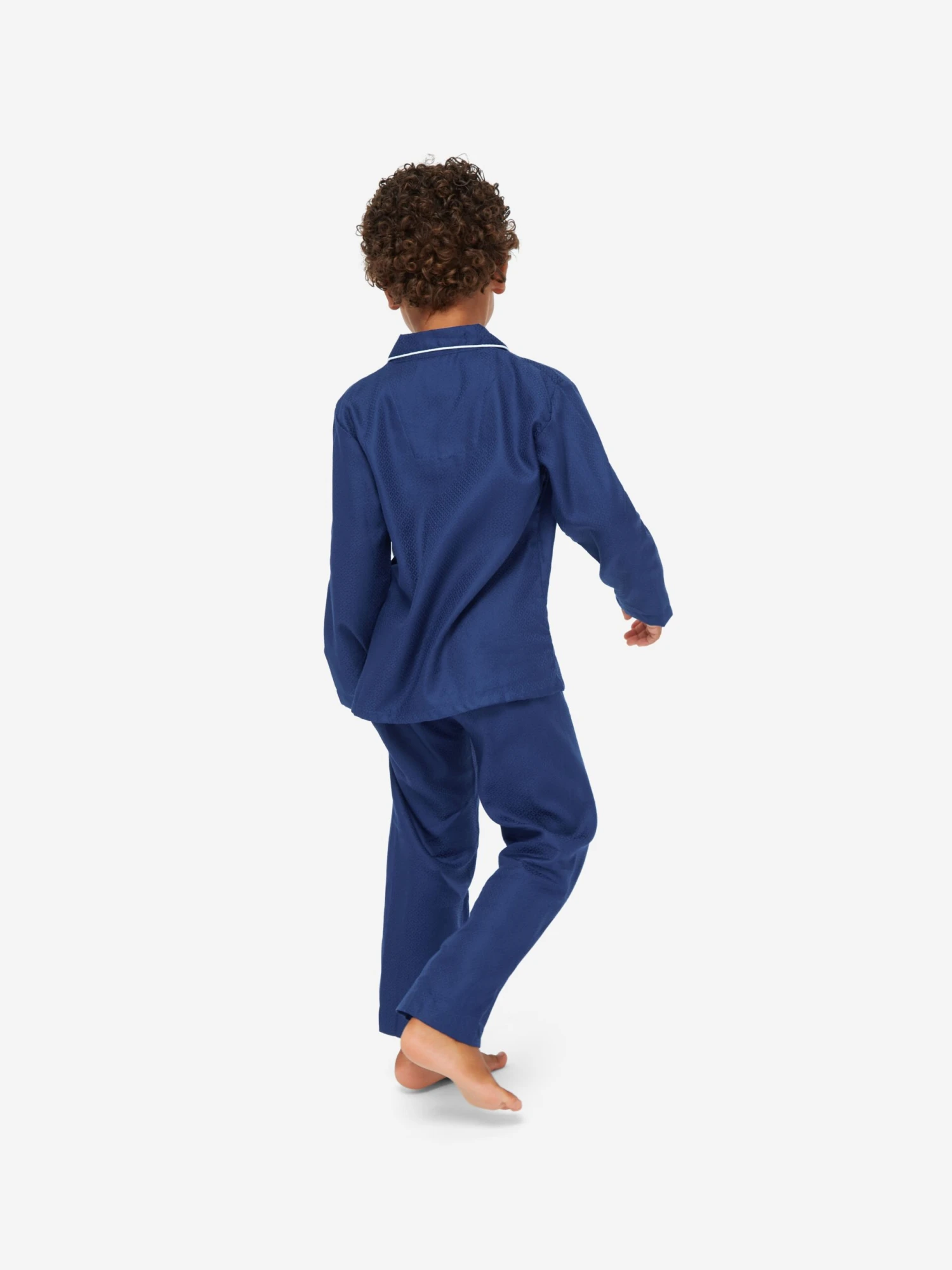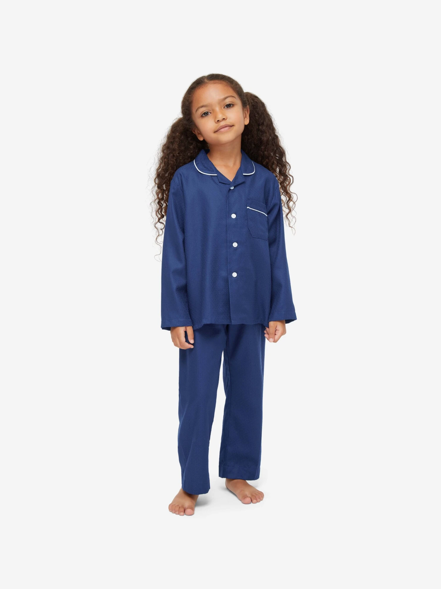 The pyjama top is fastened with buttons and piped in complementary white, while the trousers have an elasticated waist for ease and comfort.