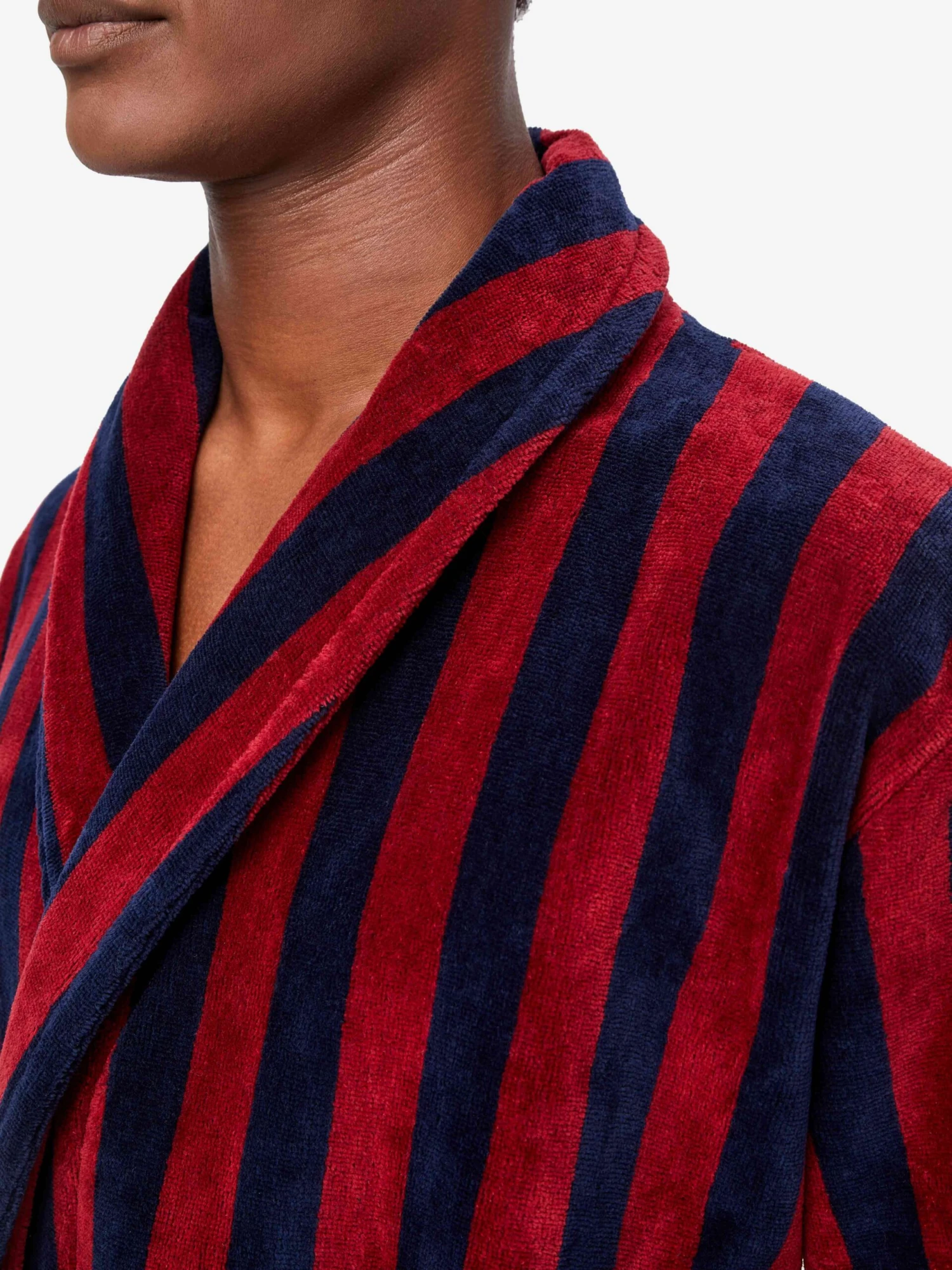This men’s bathrobe is designed for a relaxed fit. The model is wearing a size medium. Model measurements: 6ft 2in / 189cm height, 37.8in / 96cm chest, 31.9in / 81cm waist.