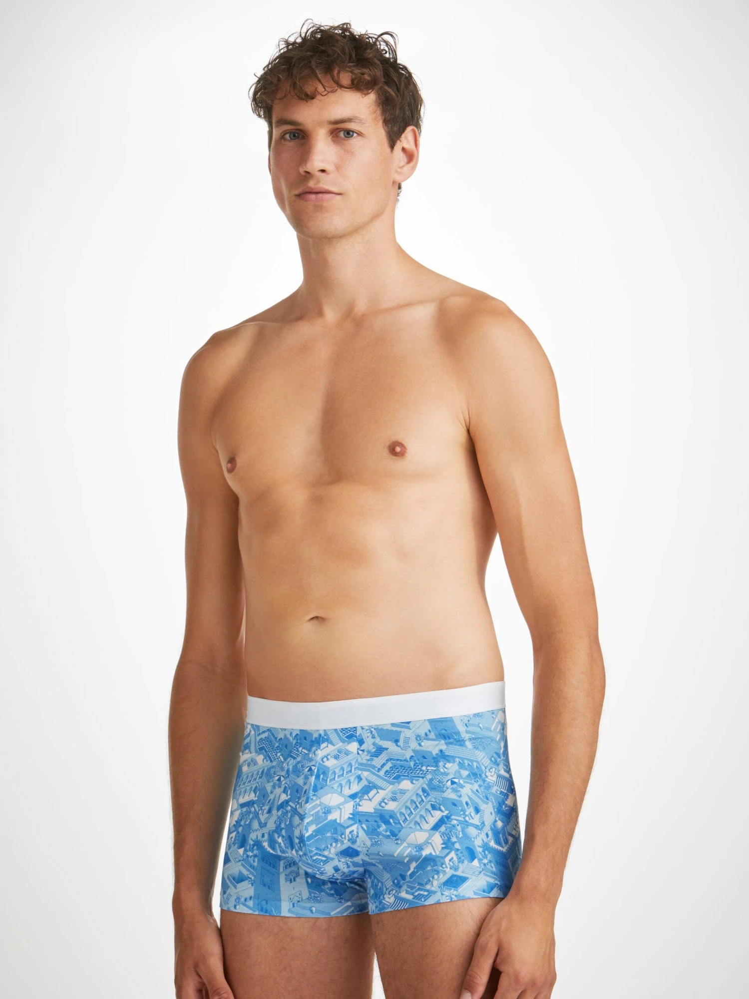 For those who prefer their boxer briefs with shorter legs, our pima cotton stretch hipsters combine a closed front with a streamlined, shorter leg. Featuring a print inspired by the rooftop living in Marrakesh with detailed landmarks, pools, bars and gardens. The printed design is also framed with a white elasticated waistband.