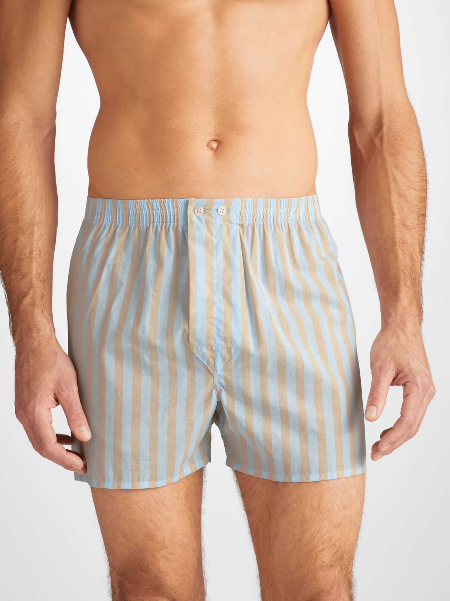 These seasonally striped blue and sand boxers are made from our signature cotton batiste fabric with a soft finish and a plain, open weave that is designed to be ultra-smooth on the skin and extremely breathable.