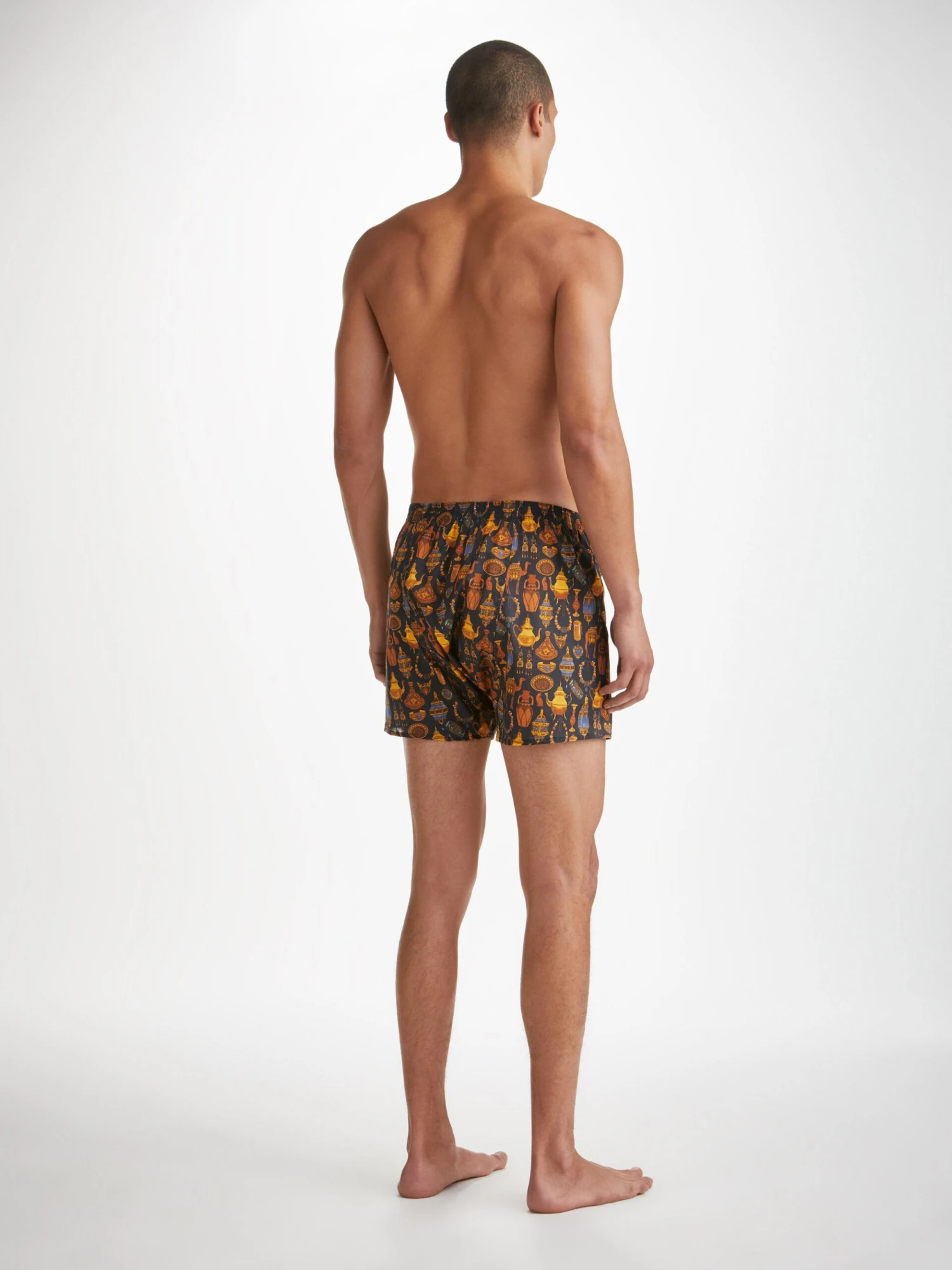 Our seasonal Ledbury 71 boxer shorts design features a hand drawn navy print inspired by treasures, trinkets and souvenirs you may find in a Moroccan market.