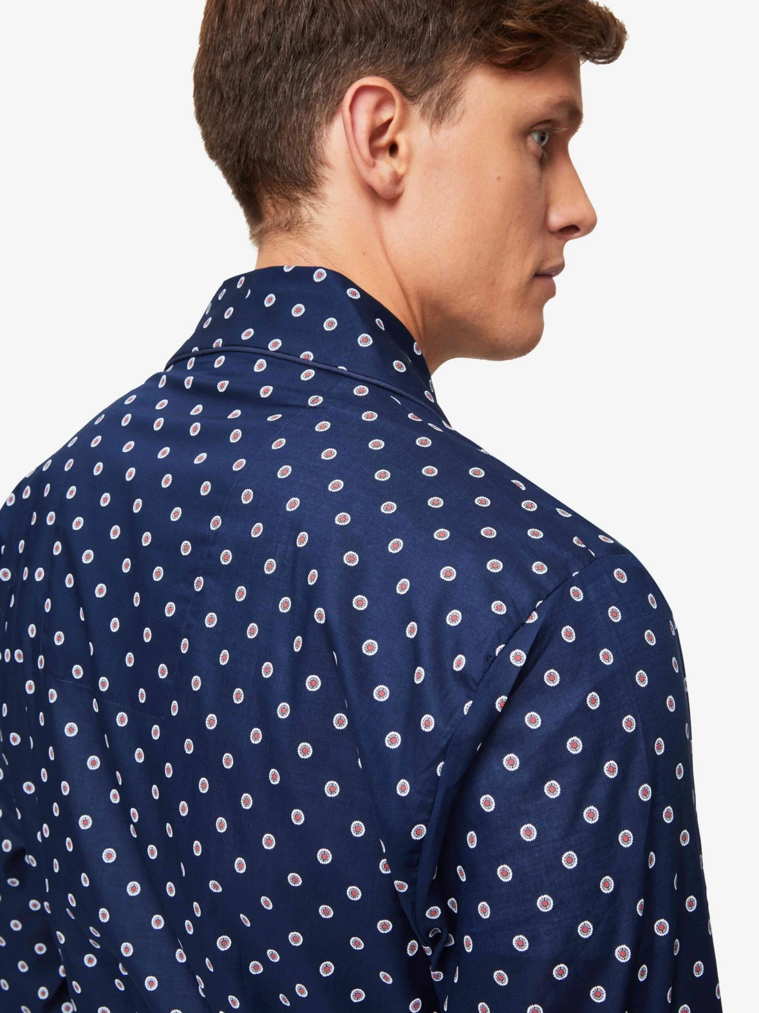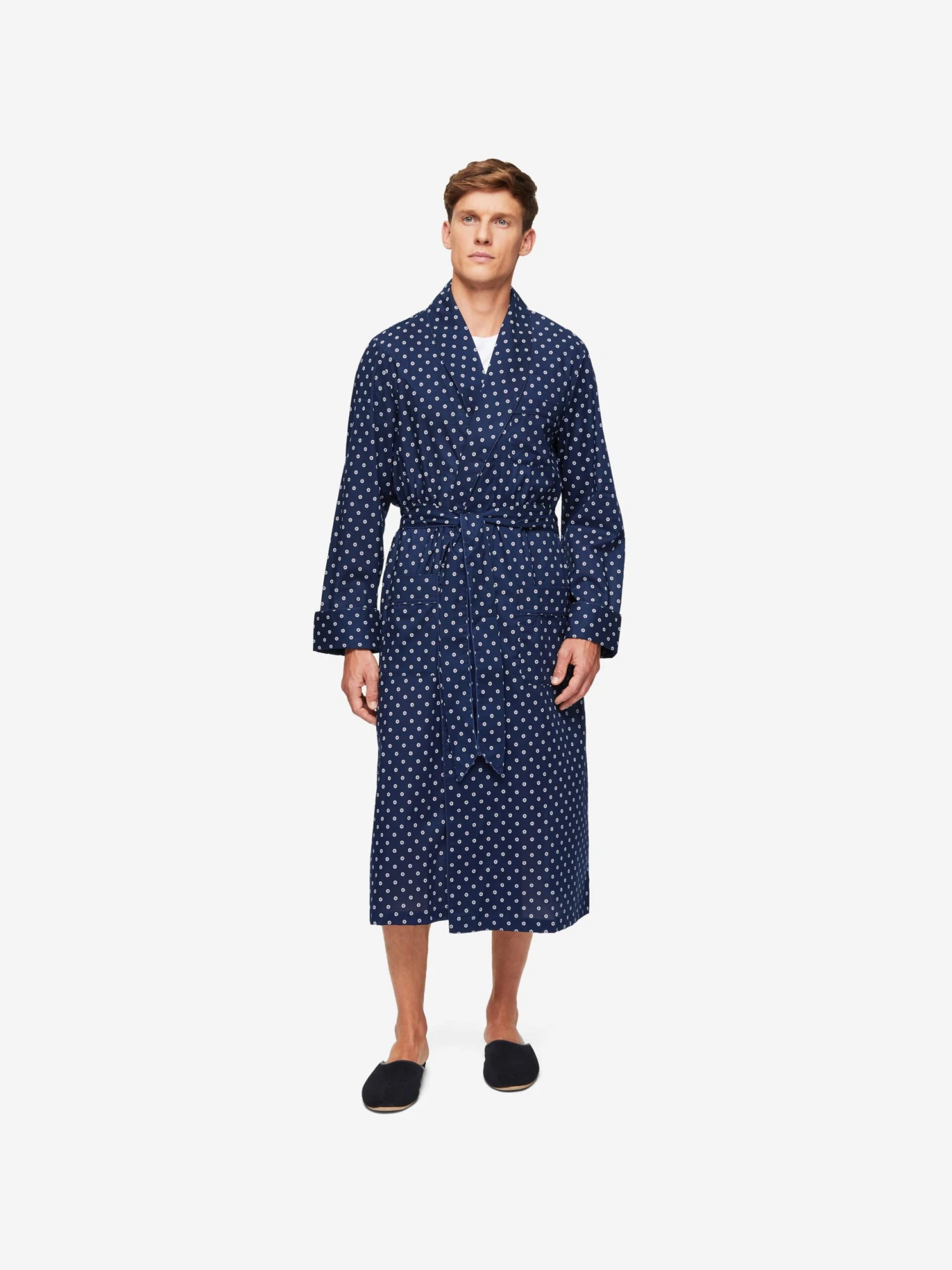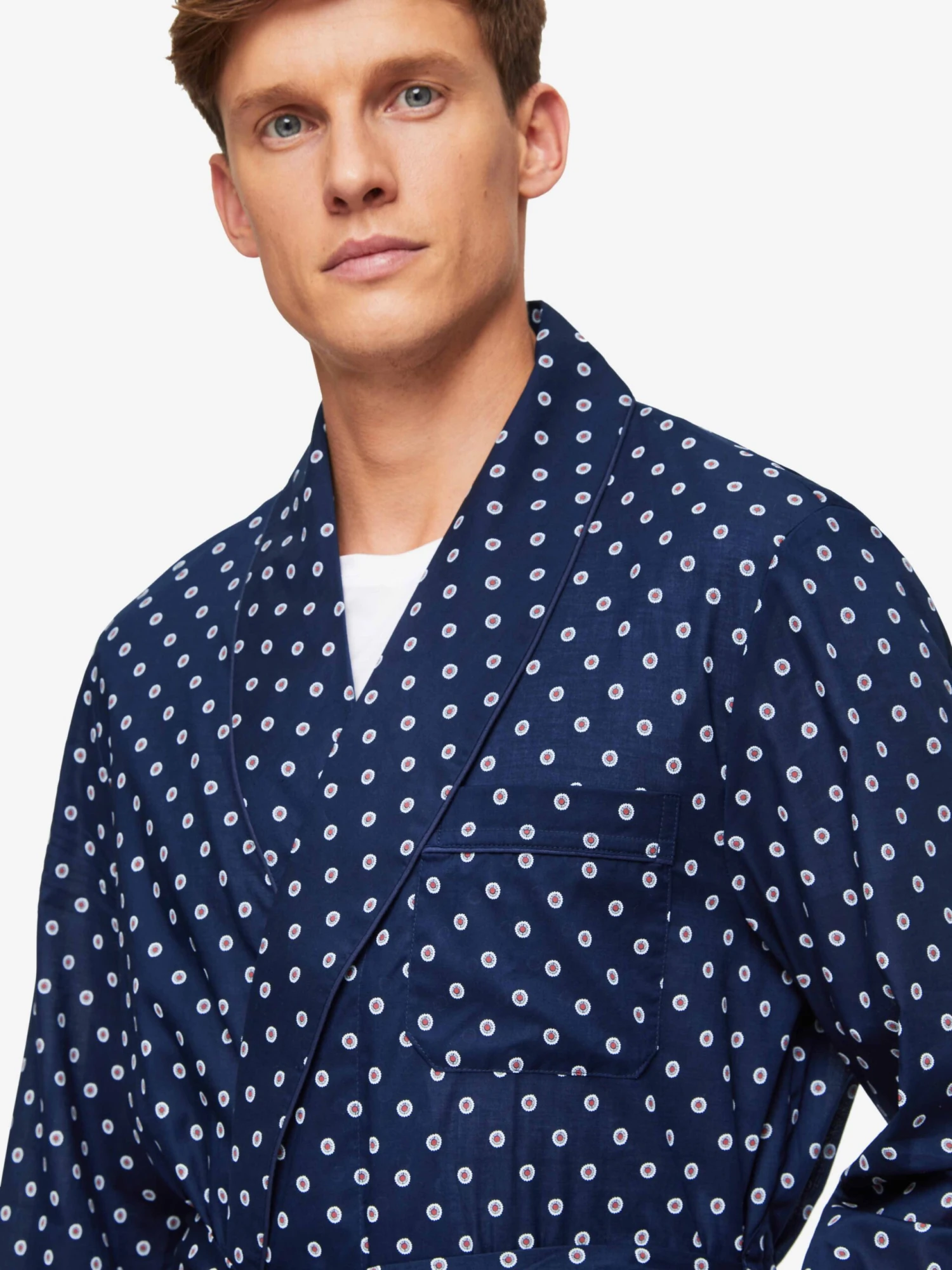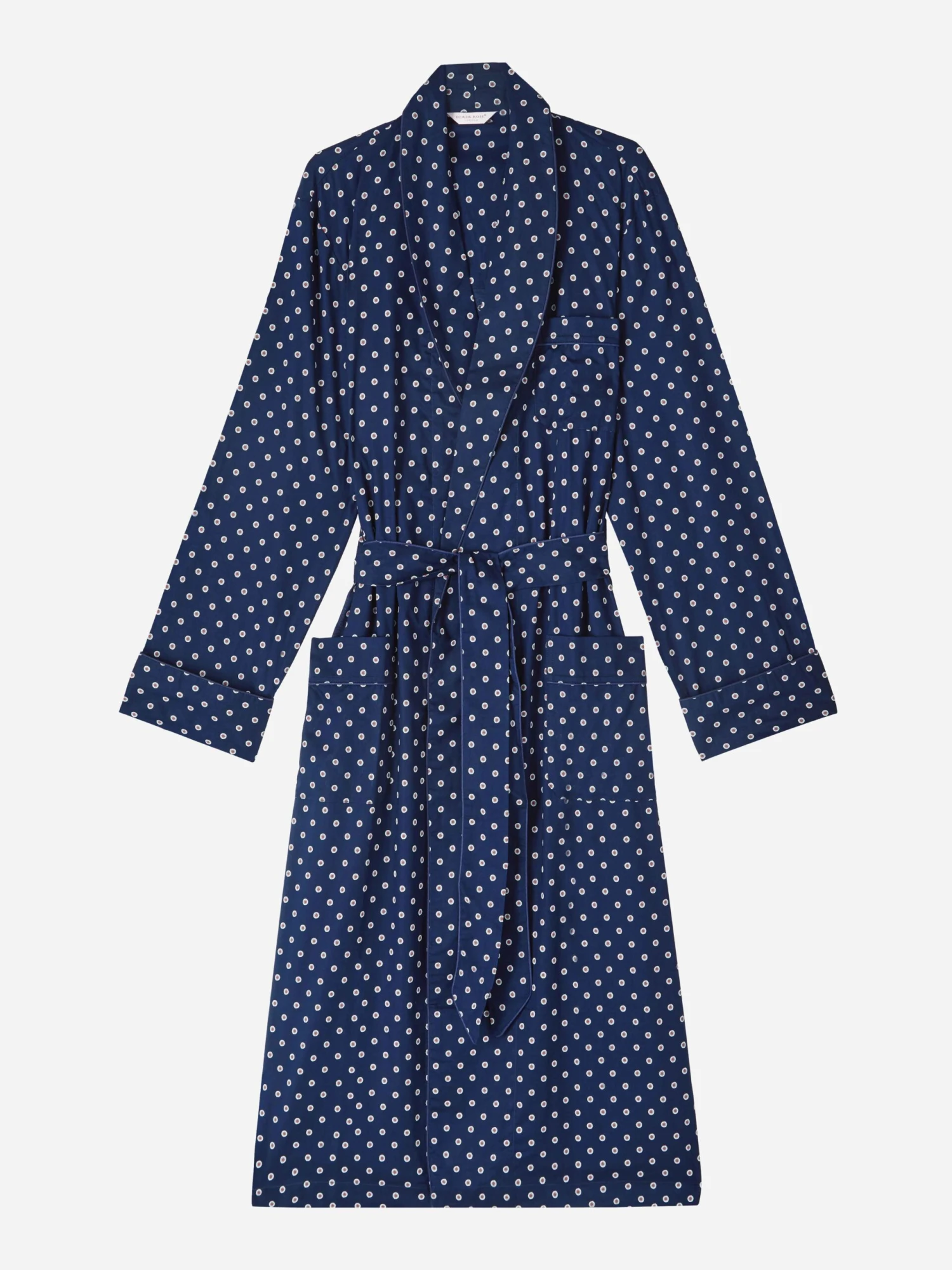 Made from our signature cotton batiste, a light and soft fabric that excels in warmer conditions, the Nelson 93 dressing gown features a classic shawl collar design with a breast pocket and two front pockets for practicality while around the house. The gown is also complemented with navy piping, a medallion print and a self-fabric tie-waist for an added touch of luxe.