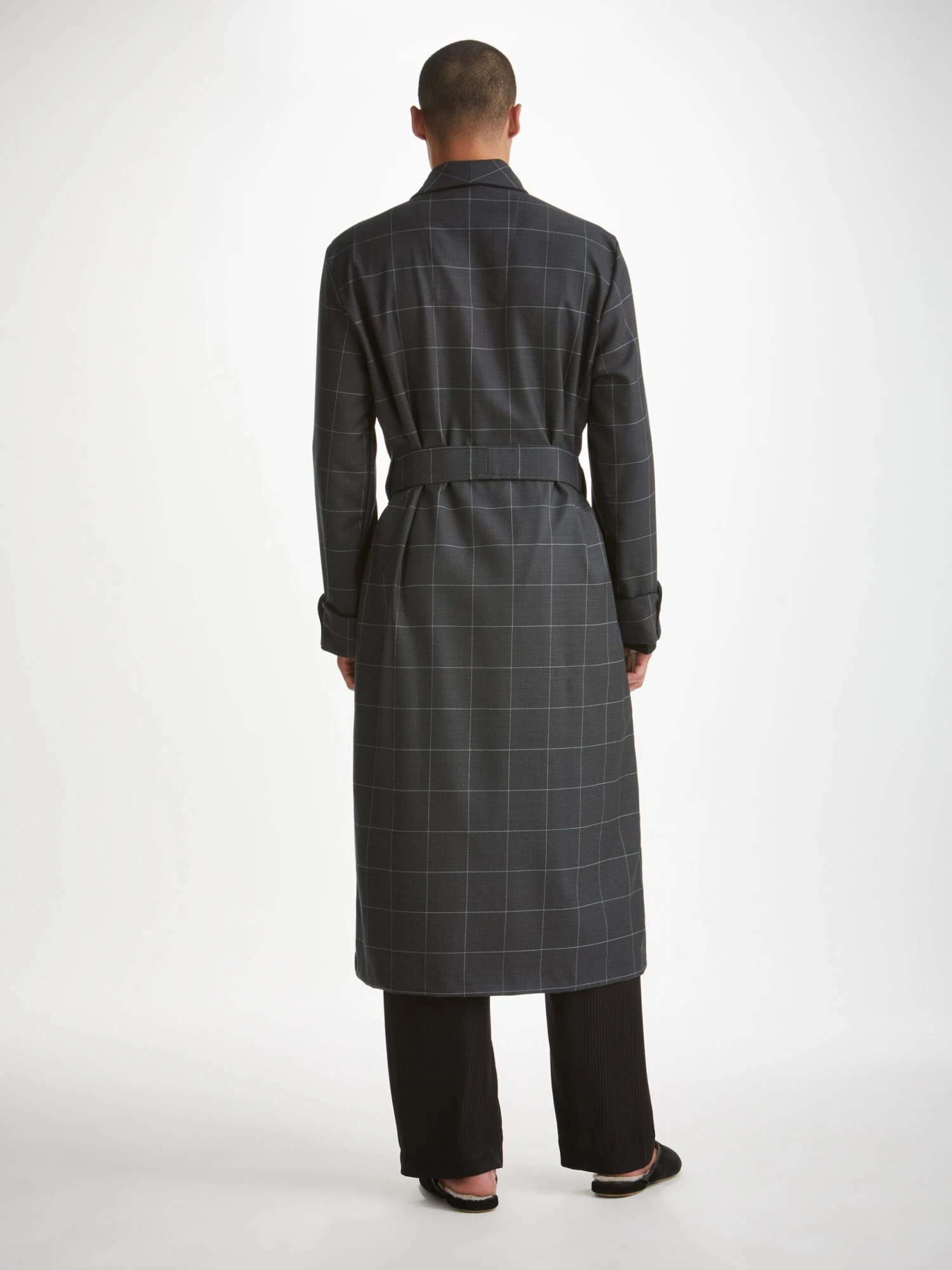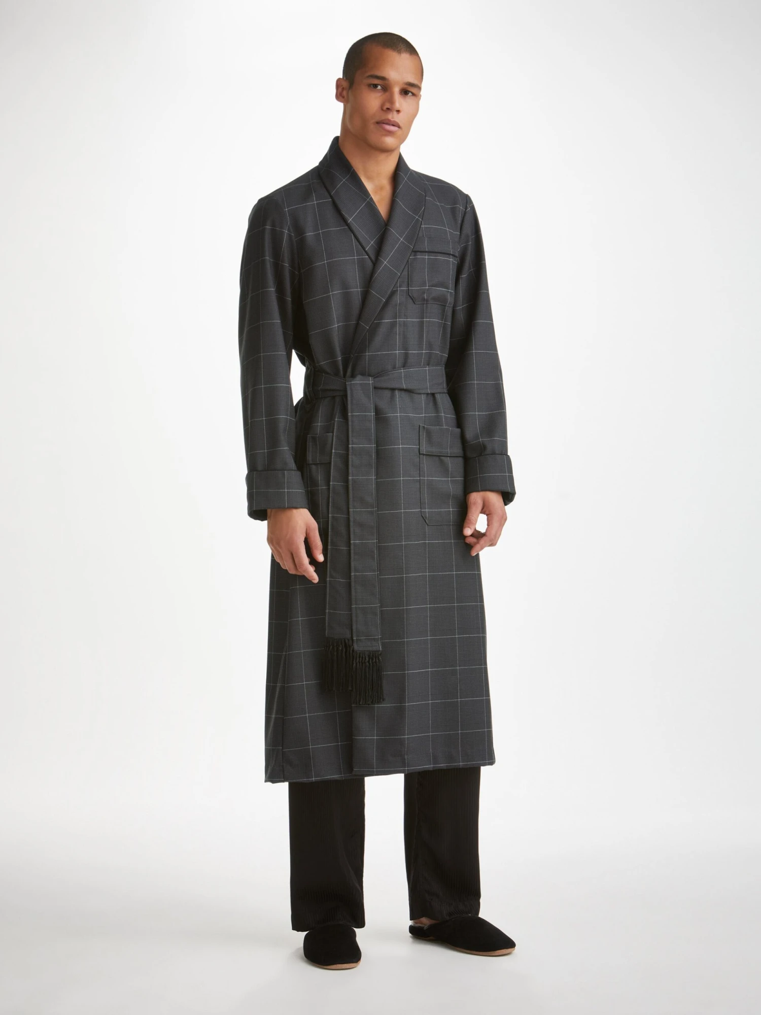 The York 45 features a charcoal glen plaid check that forms the base of this wool dressing gown.