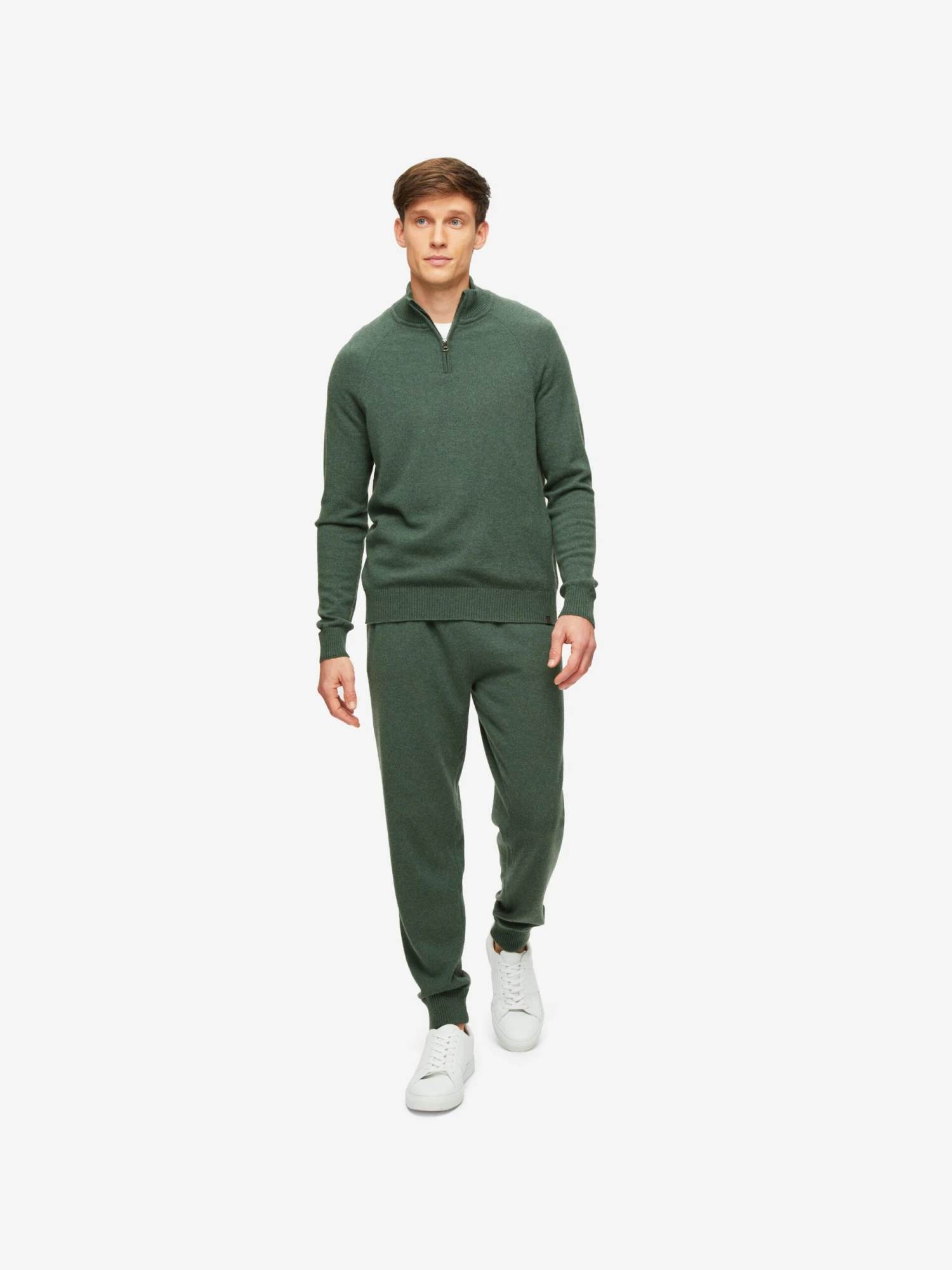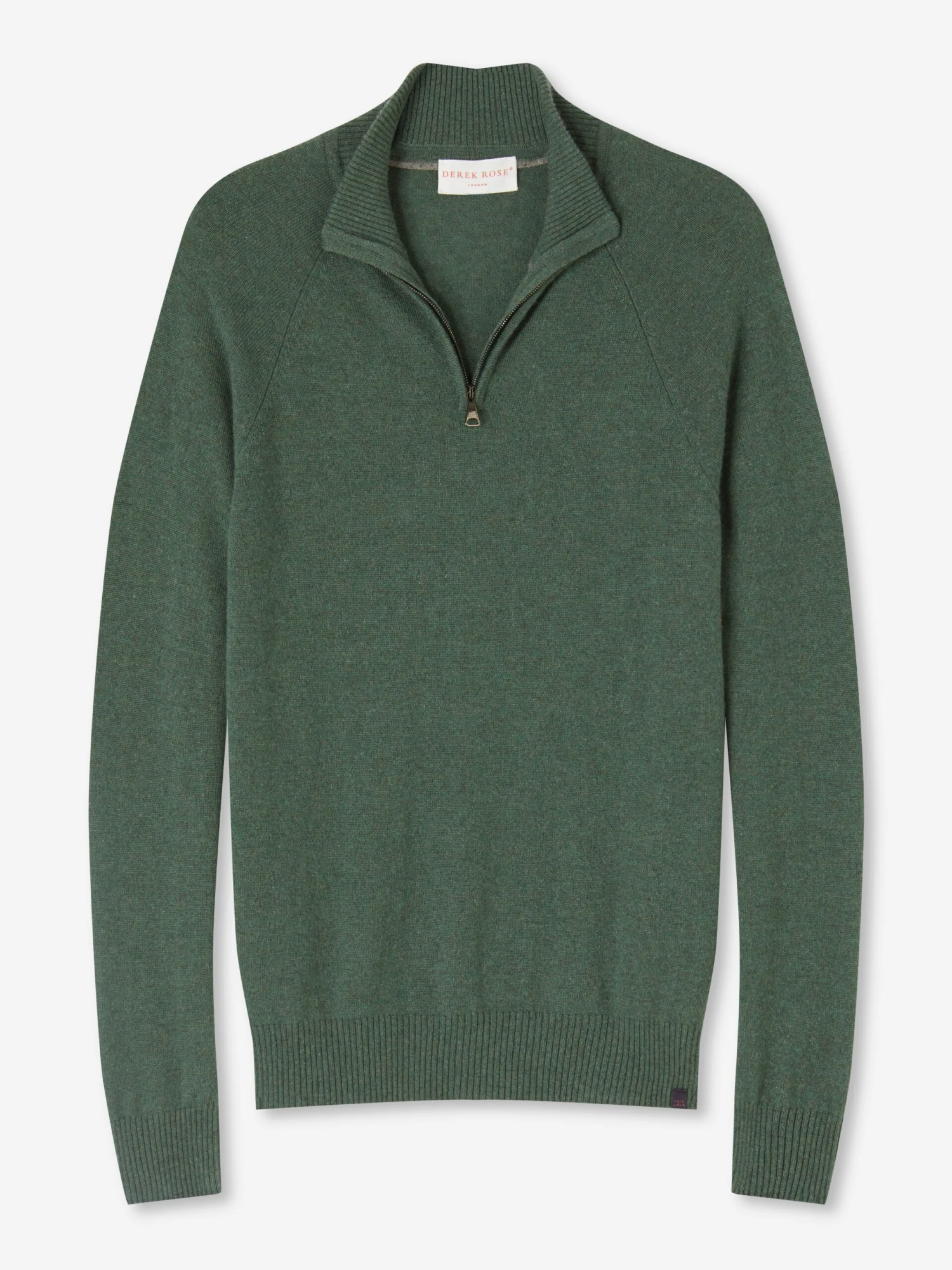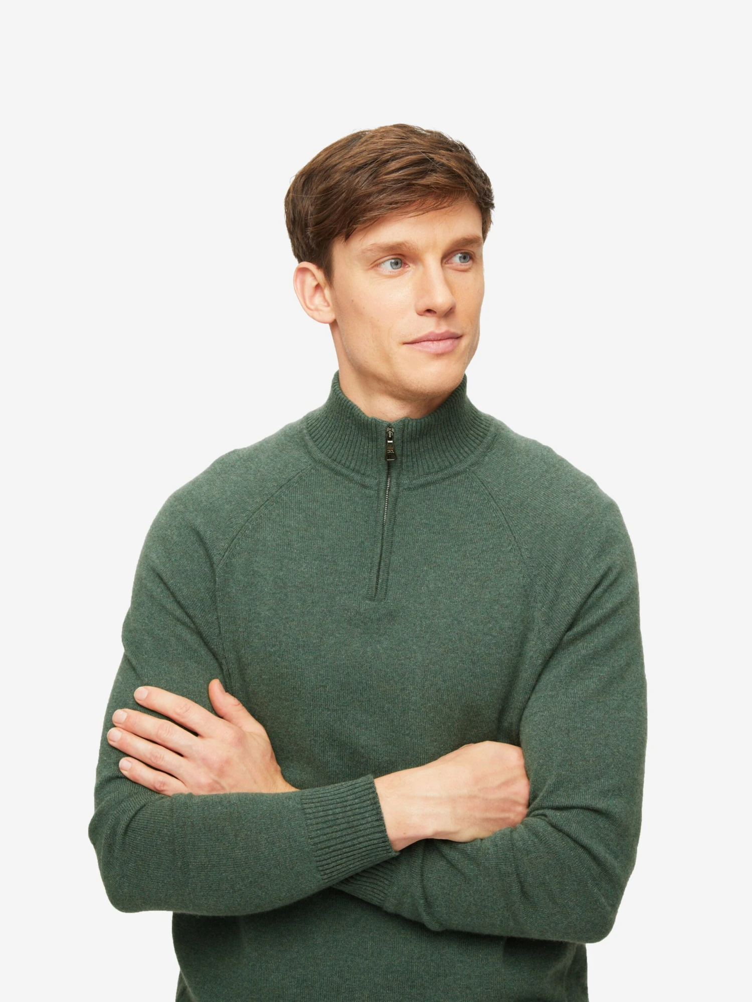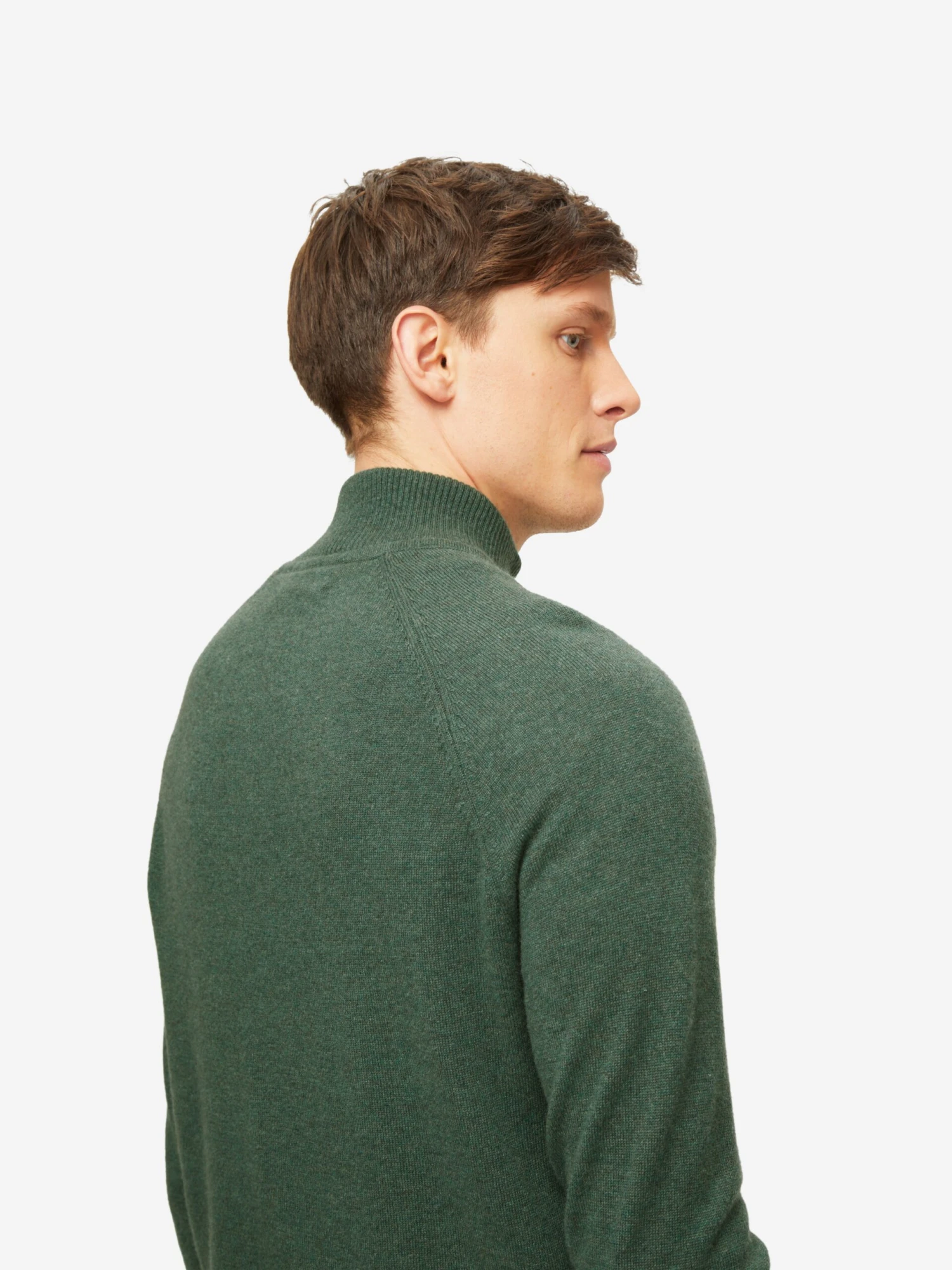 Knit from pure cashmere, this rich green half-zip sweater fits closely to the frame, keeping you warm and cosy. The top features a carbon zip-puller that is contoured to your natural fingertip curve for a quick and easy closure should it get colder.