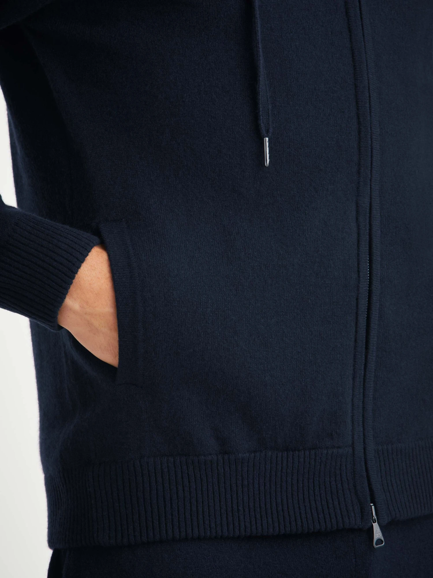 Seen here in a deep navy, it’s finished with a double-ended zipper with carbon zip-pullers that are contoured to your natural fingertip curve. It has to be the finest way to stay warm during the colder months.