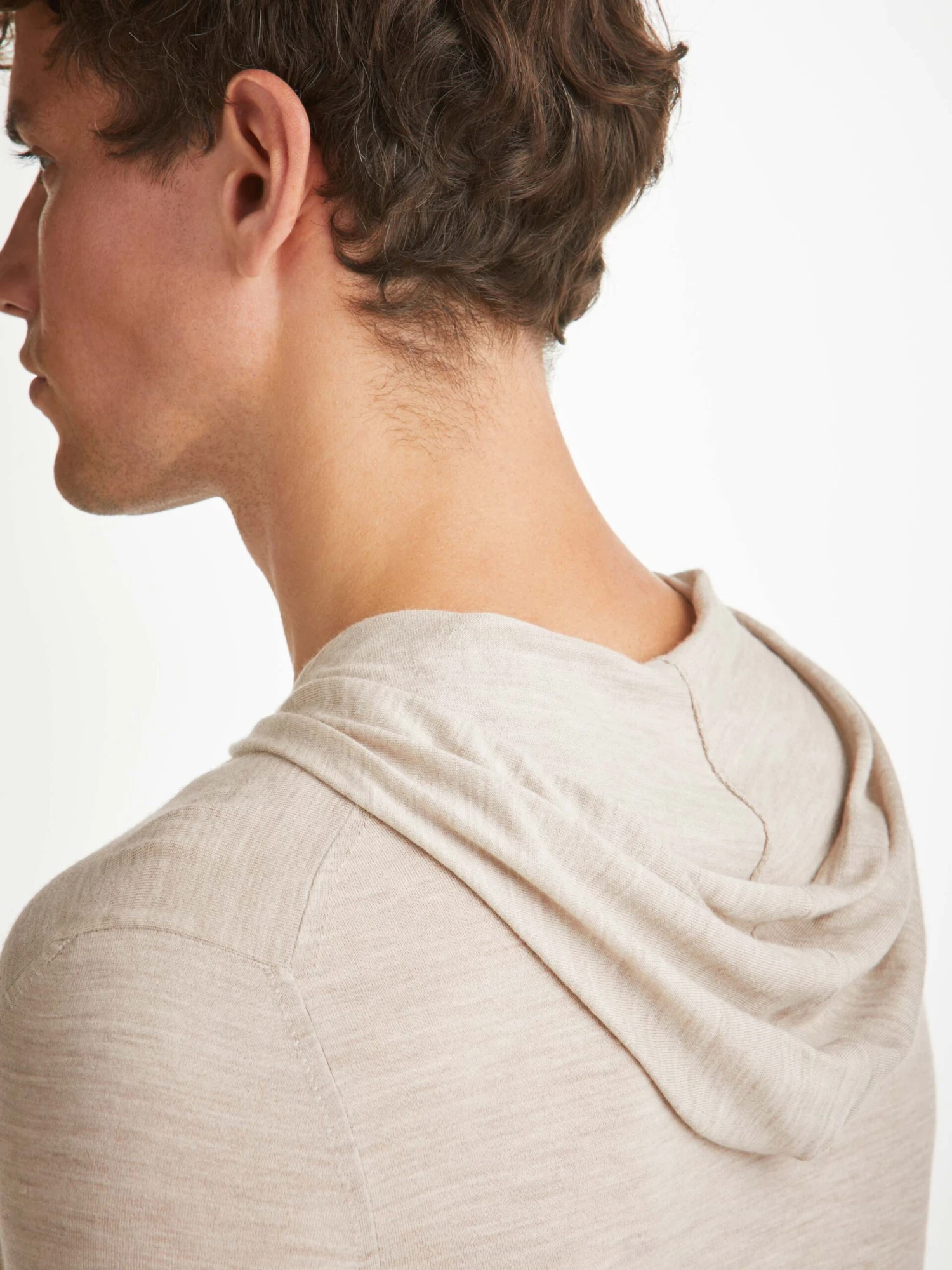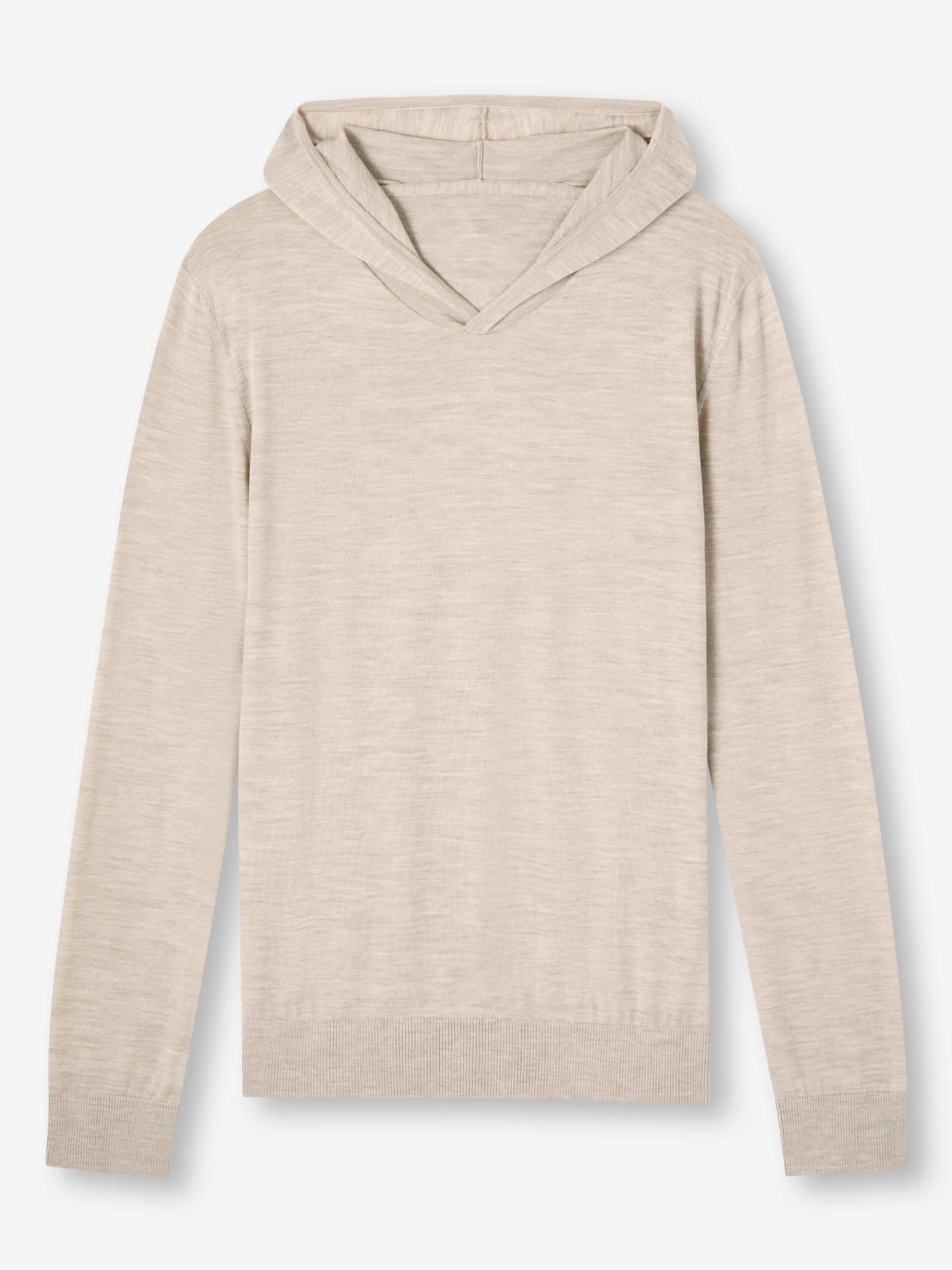 Designed with 100% merino wool, our Orson oat hoodie has been created with a ribbed neckline and cuffs as well as a practical hood.