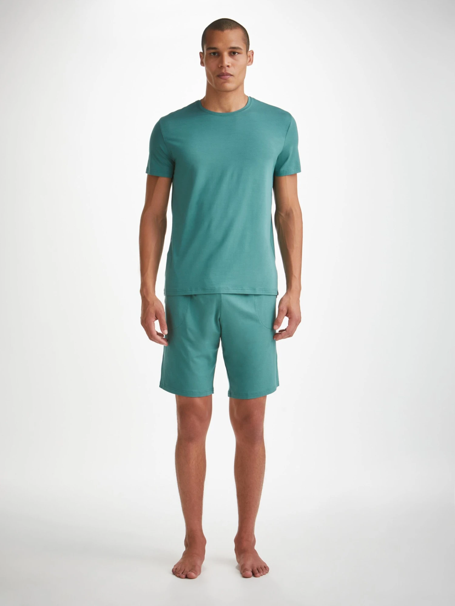 Featuring a combined elastic and tie waistband, our Basel teal jersey lounge shorts also feature two front side pockets and a rear back pocket to keep your phone and essentials close while you’re lounging. Both comfortable and stylish, we’ve elevated this loungewear short into a luxury essential for the modern man.