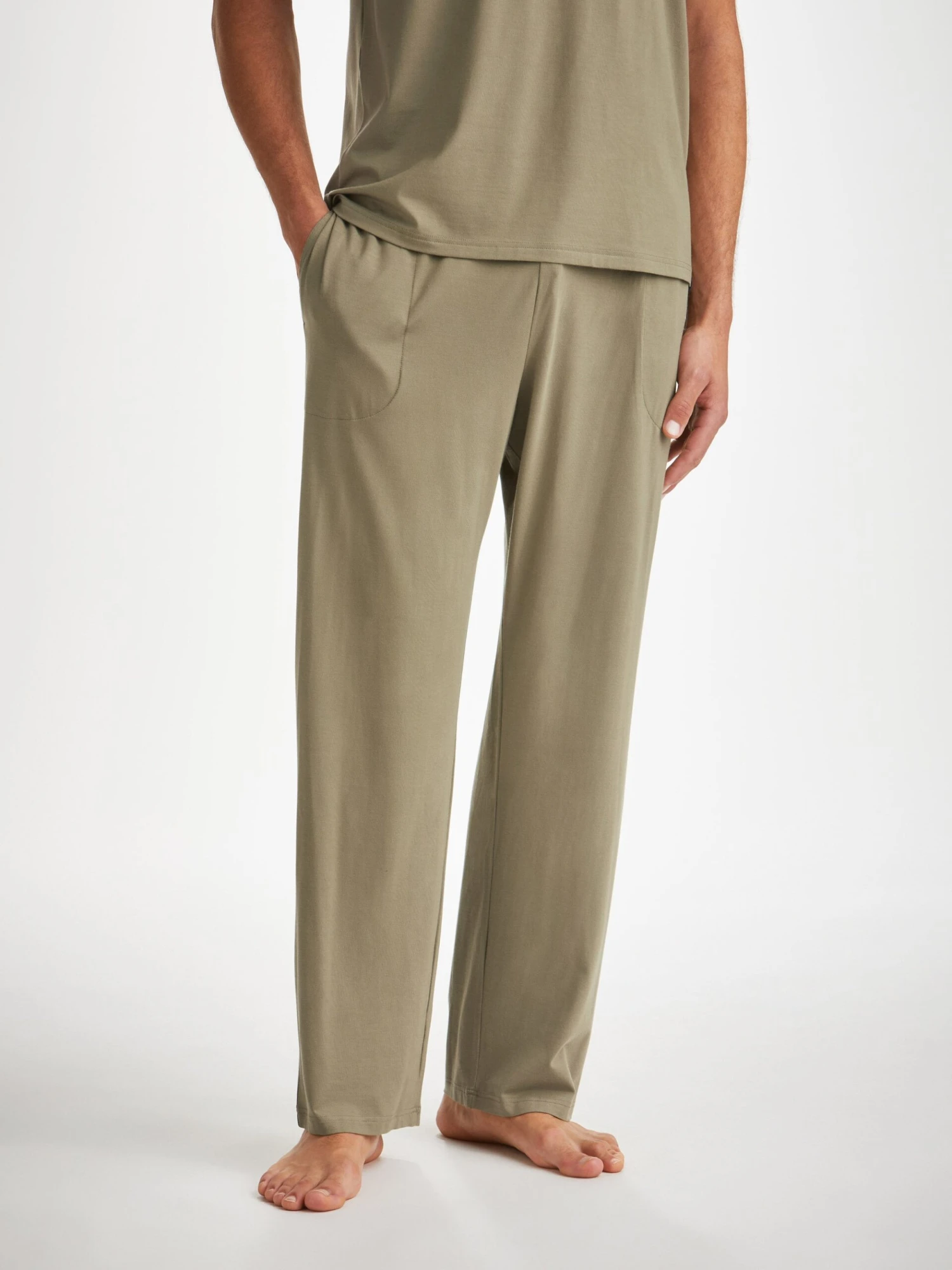 Featuring a combined elastic and tie waistband, our Basel khaki jersey lounge trousers also feature two front side pockets and a rear back pocket to keep your phone and essentials close while you’re lounging.