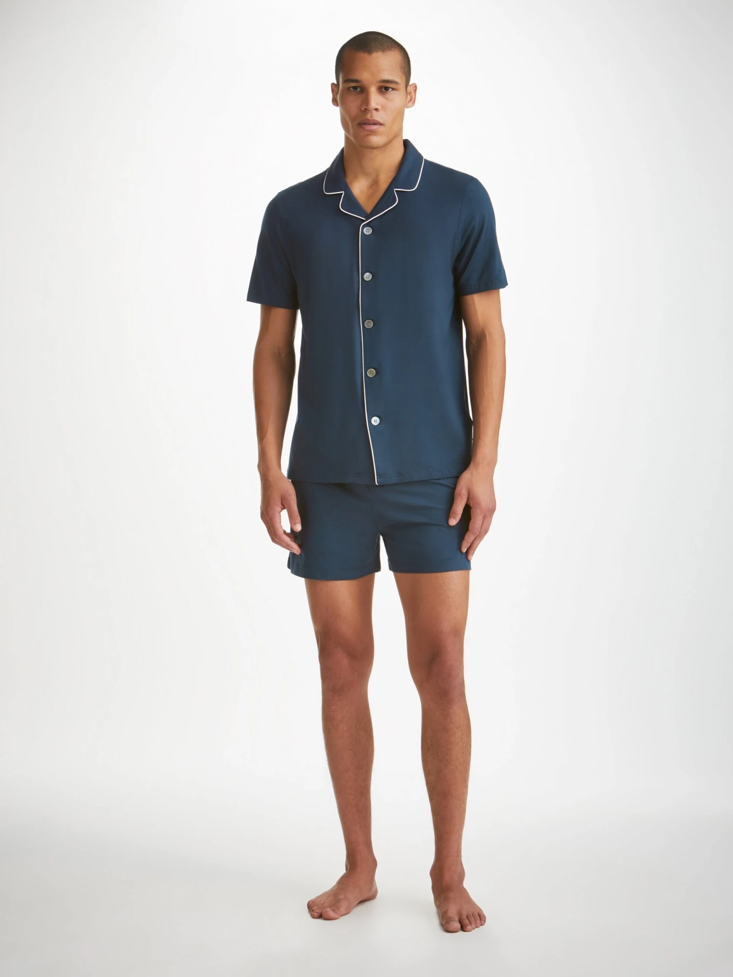 We’ve constructed these navy pyjamas without a draw cord and an elasticated waistband for easy comfort.