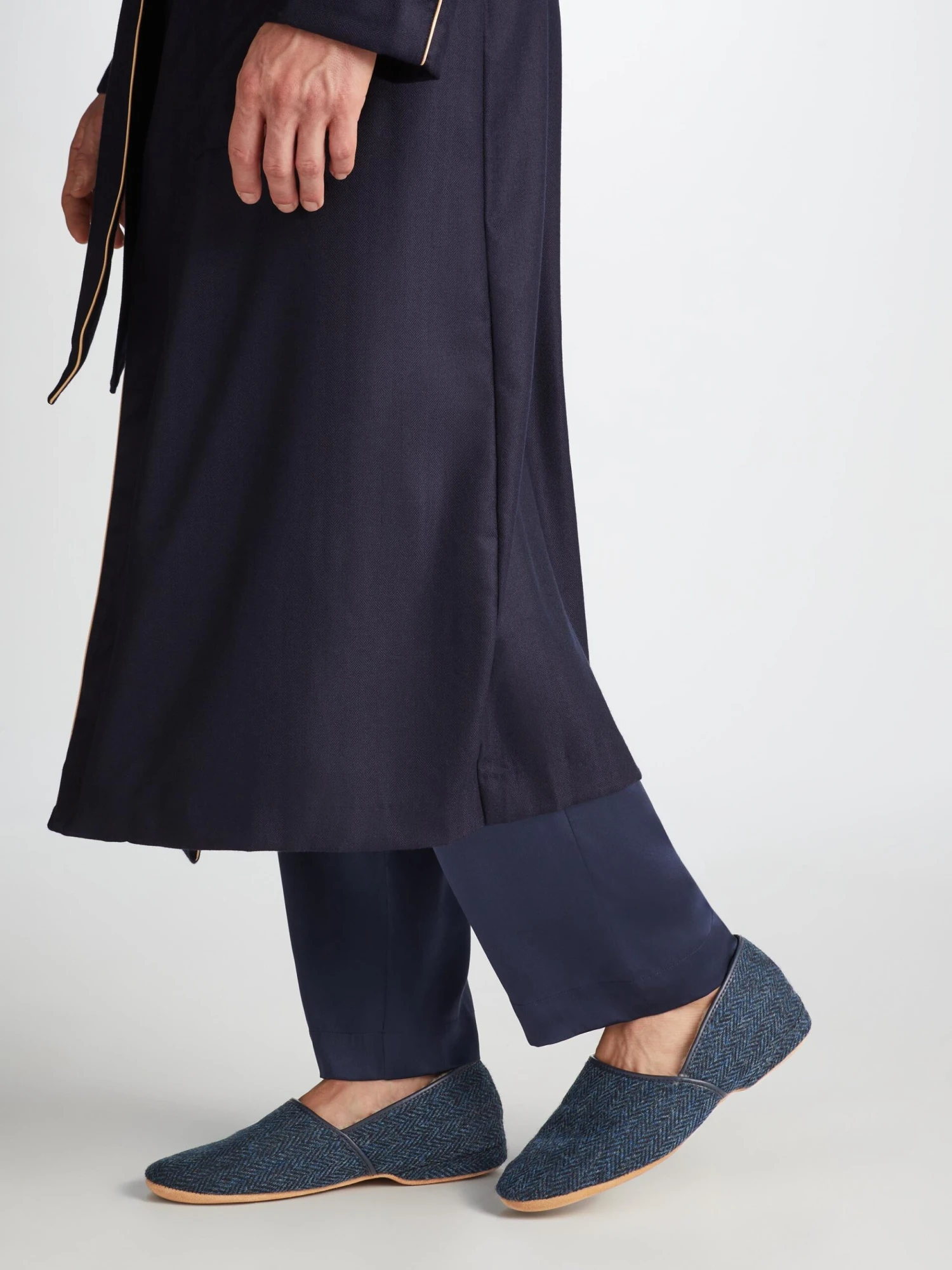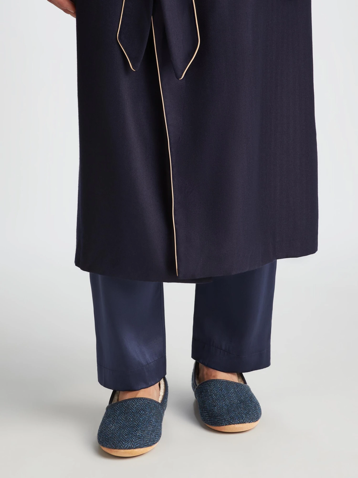 The sole is made from soft suede meaning you can glide around in comfort in the morning without waking the family. The slippers are finished with a navy leather trim for an added touch of luxe.