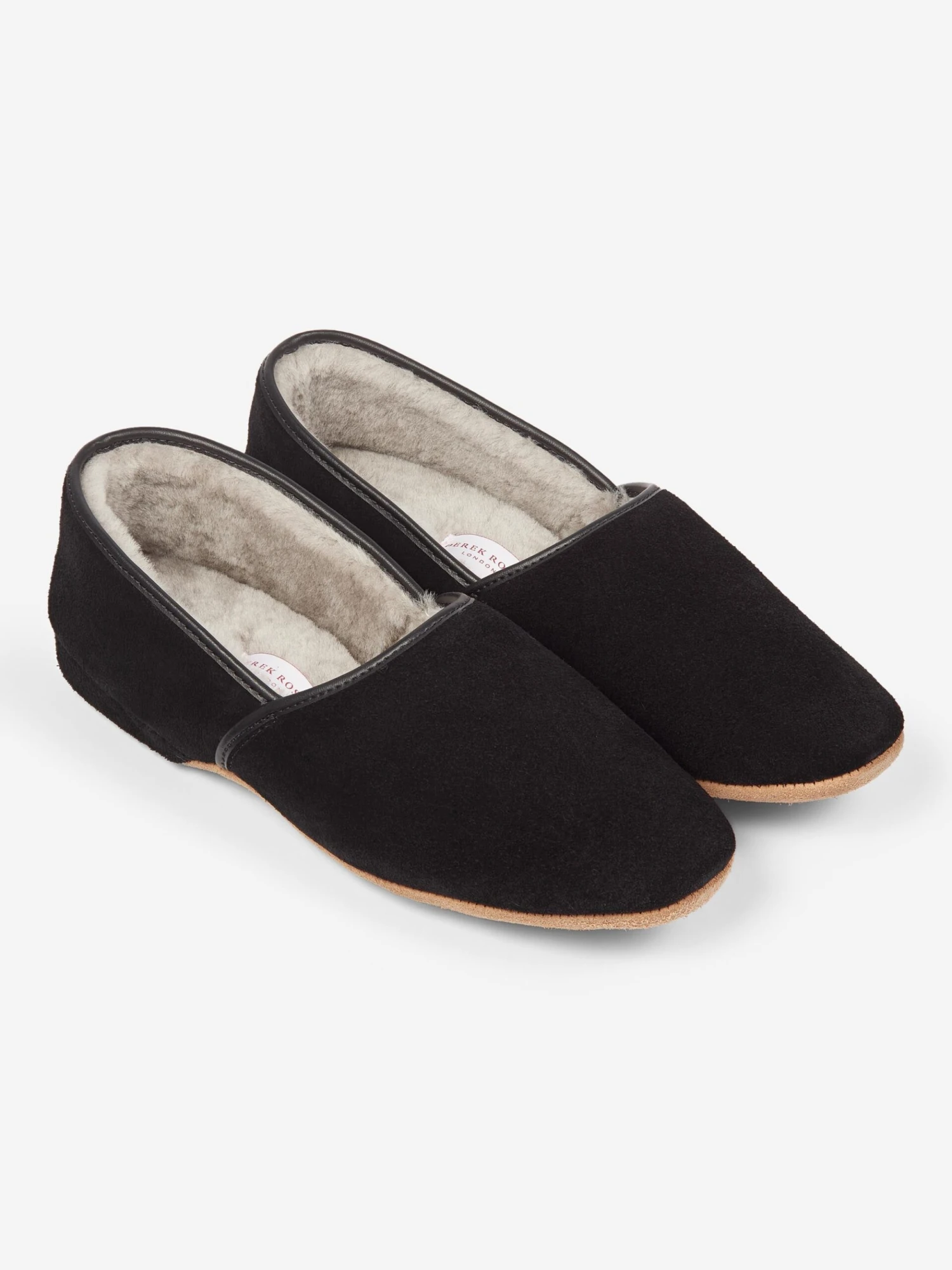 The sole is made from soft suede meaning you can glide around in comfort in the morning without waking the family. The slippers are finished with a black leather trim for an added touch of luxe.