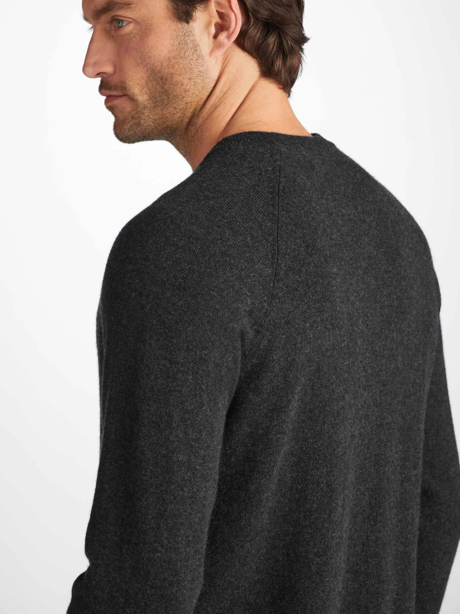 This 100% cashmere charcoal sweater has been designed with ribbed cuffs, hem and collar, as well as raglan sleeves for the perfect fit. Contrast internal ribbing and an integrated ‘V’ detail have been added for a refined finish.