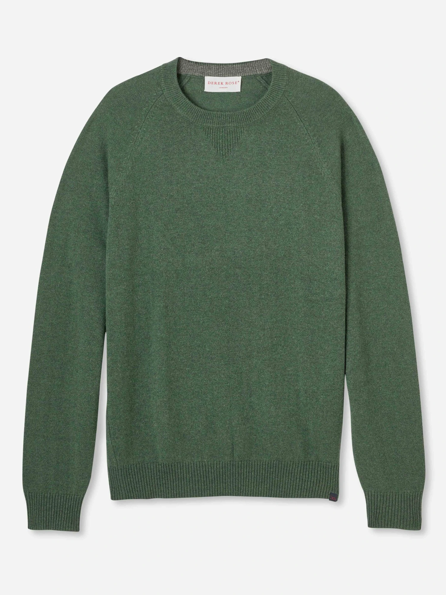 This 100% cashmere green sweater has been designed with ribbed cuffs, hem and collar, as well as raglan sleeves for the perfect fit. Contrast internal ribbing and an integrated ‘V’ detail have been added for a refined finish.