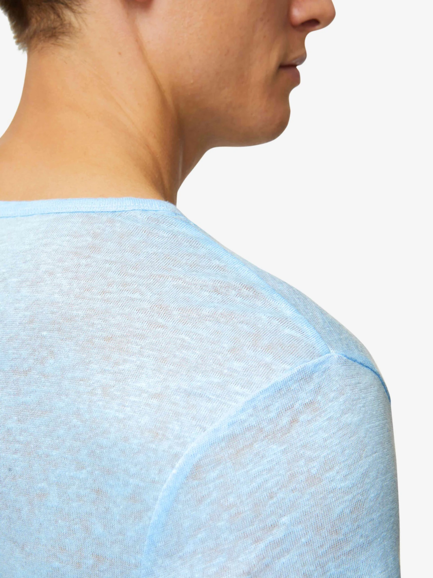 Our Jordan t-shirt needs to be touched to be believed. Jordan is an exceptionally soft pure linen jersey; this is like no other linen shirt you own. A fabric which typically comes with that rough feeling, our Jordan is cut from a super-soft and lightweight pure linen, knitted with a very fine yarn and finished with a soft wash. All this creates the supernatural softness.