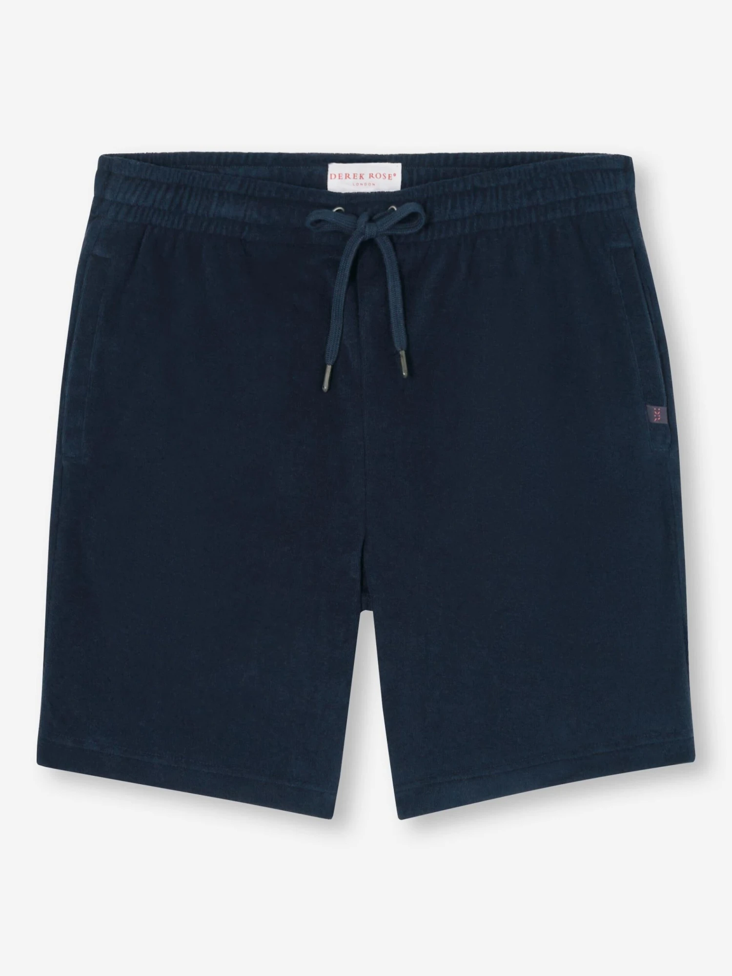 Made with high quality towelling cotton for a truly luxurious handle, small innovative touches such as a curved back yoke, elasticated waistband with a cotton drawcord and self fabric cuffs elevate the Isaac navy towelling shorts into a wardrobe must-have. All our Isaac shorts come with a handy zipped back pocket for your possessions too.