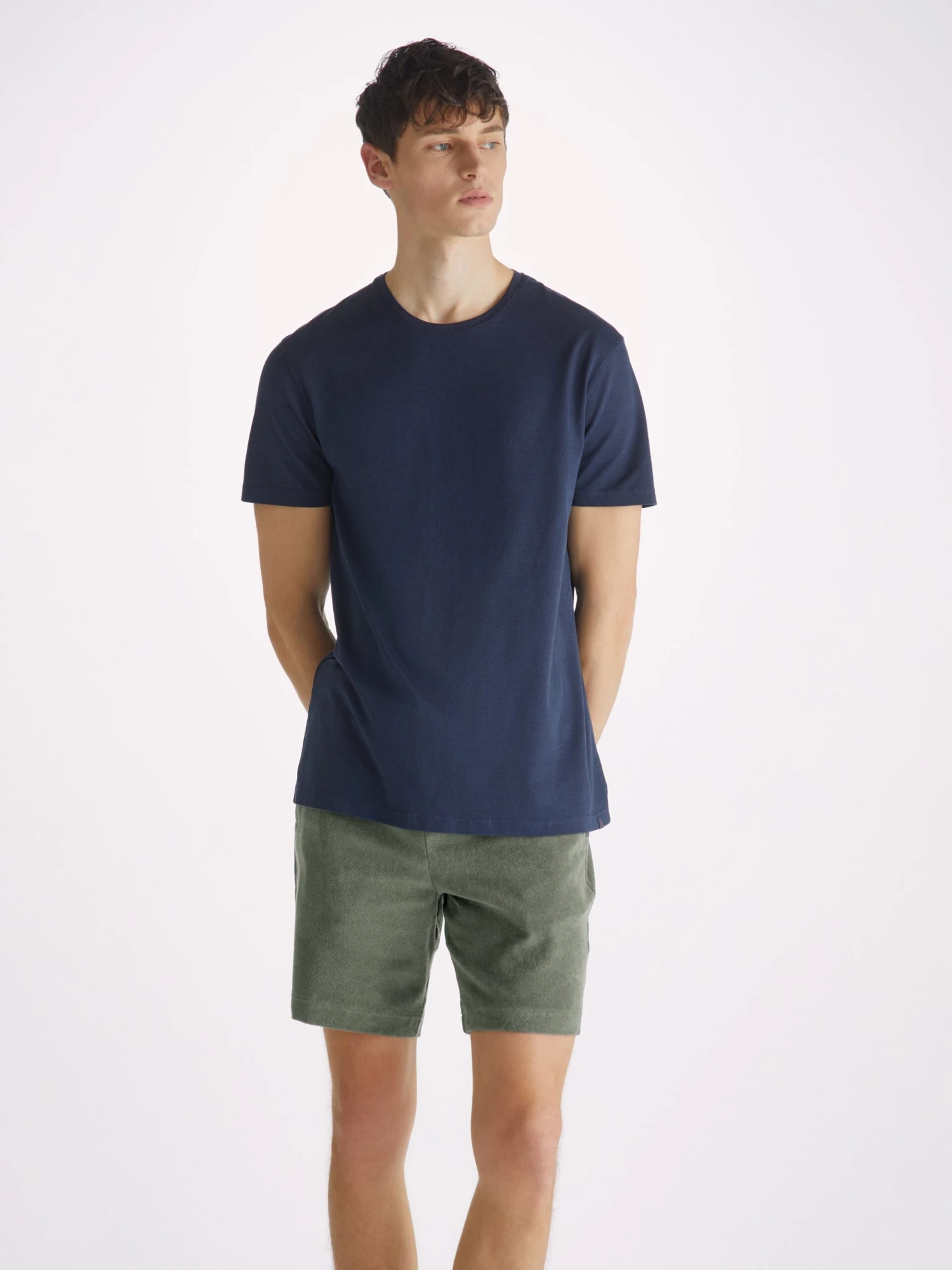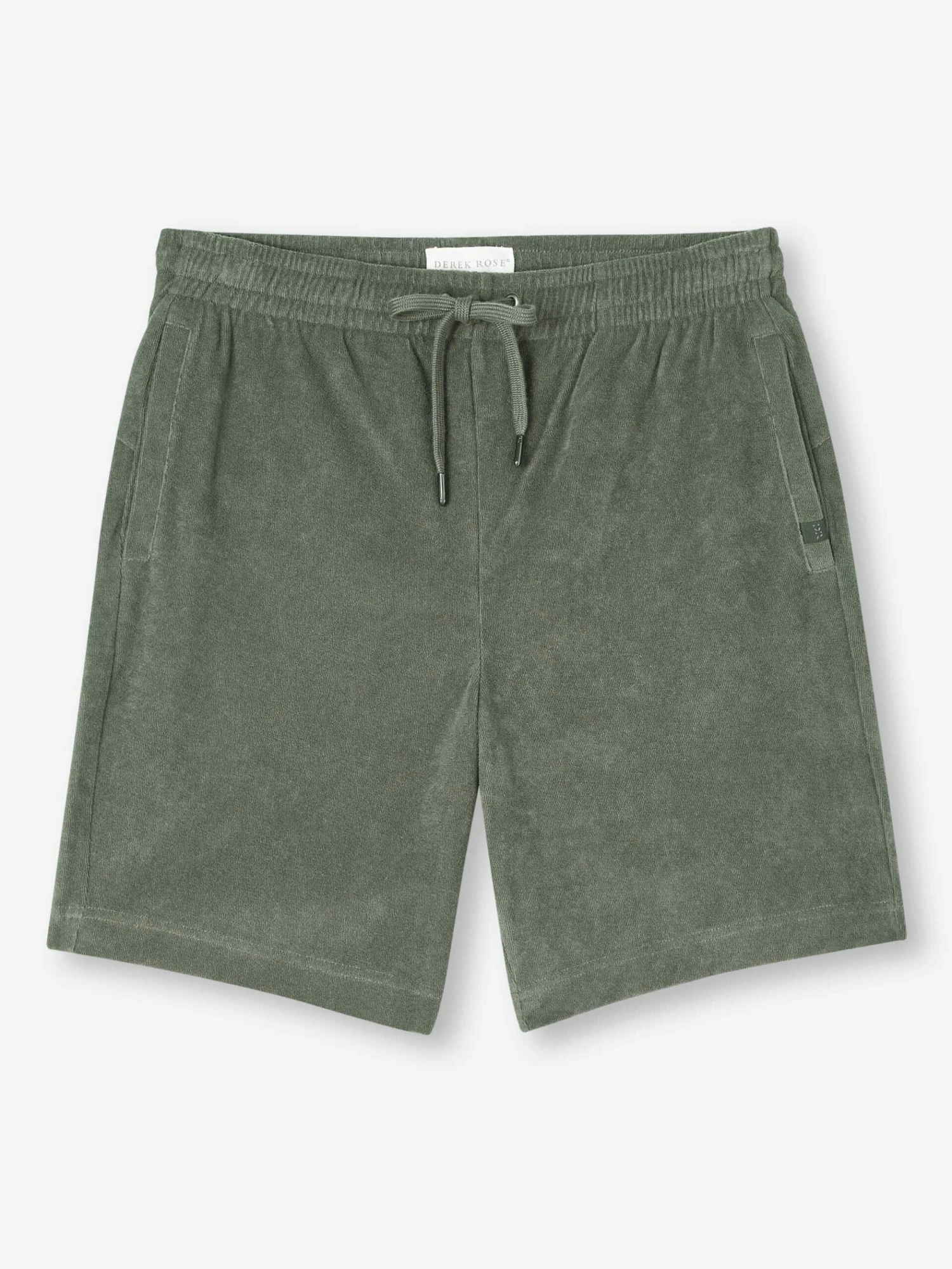 Made with high quality towelling cotton for a truly luxurious handle, small innovative touches such as a curved back yoke, elasticated waistband with a cotton drawcord and self fabric cuffs elevate the Isaac soft green towelling shorts into a wardrobe must-have. All our Isaac shorts come with a handy zipped back pocket for your possessions too.