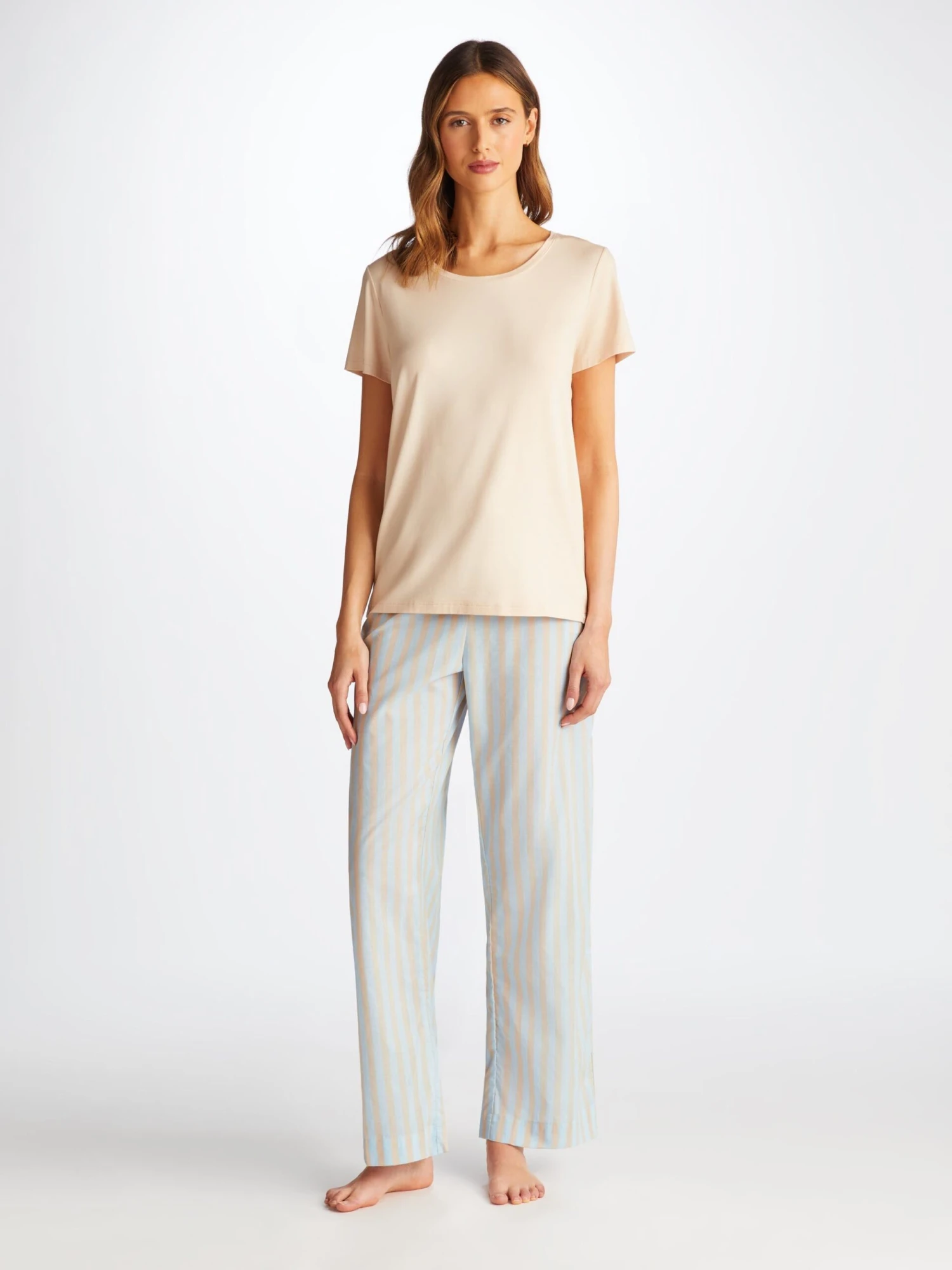 Our Amalfi 20 lounge trousers feature a seasonal blue and sand stripe pattern. This women’s lounge trouser is ideal for the warmer months but will keep you looking and feeling great throughout the seasons.