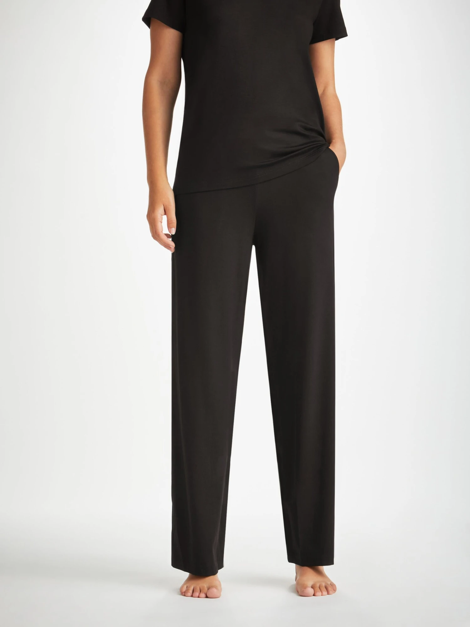 Made from a unique blend of micro modal stretch, our specially developed Basel fabric is ultra-soft and doesn’t pill, making it able to withstand countless days of lounging and wear. What’s more, the classic black hue will retain its colour wash after wash and the shape will continue to return to its original silhouette even if folded or hung for long periods.