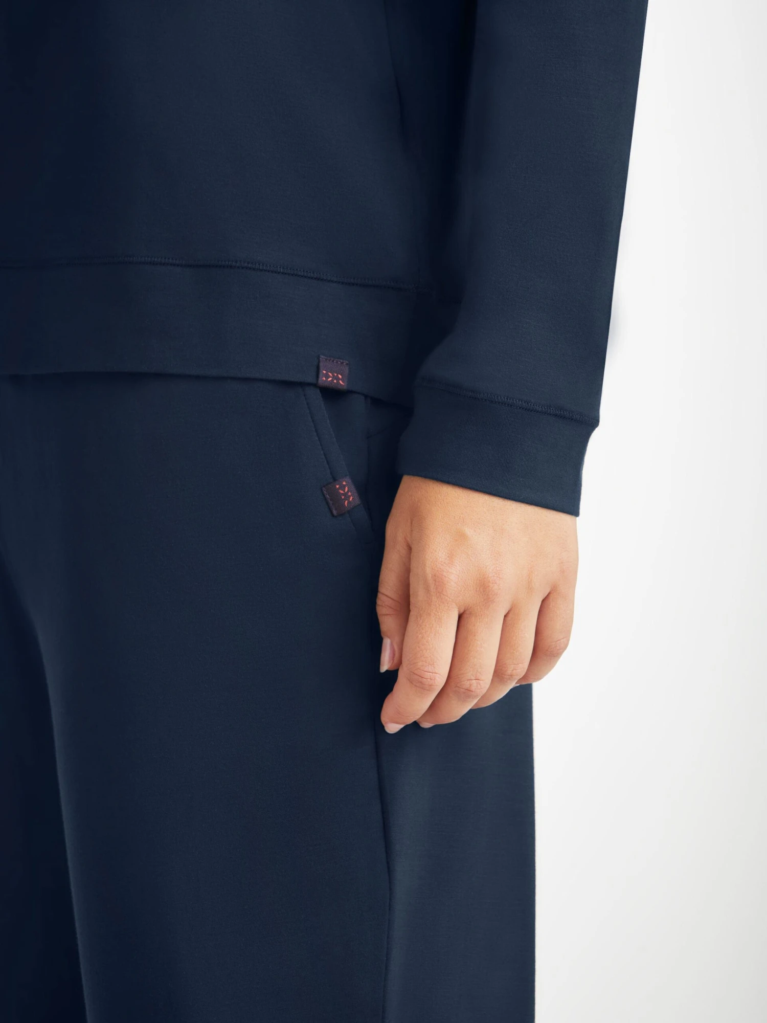 Our Basel fabric in navy has to be touched to be believed. It offers long-lasting softness and doesn’t pill, making it able to withstand countless days of lounging.