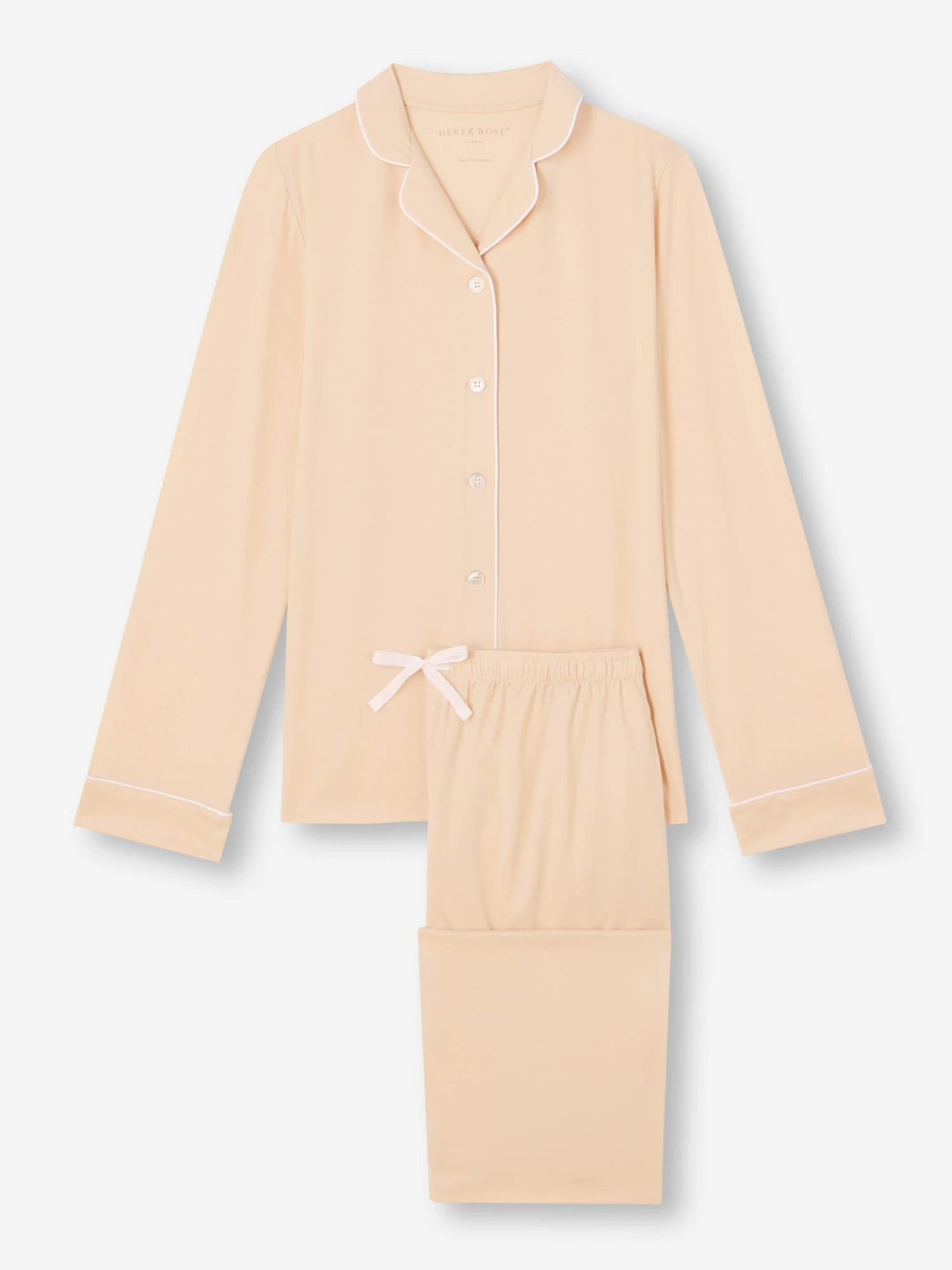 Combining a comfortable and flattering shape with intricate details, our Lara women’s pyjamas in cream will keep you looking great and feeling comfortable throughout the seasons.