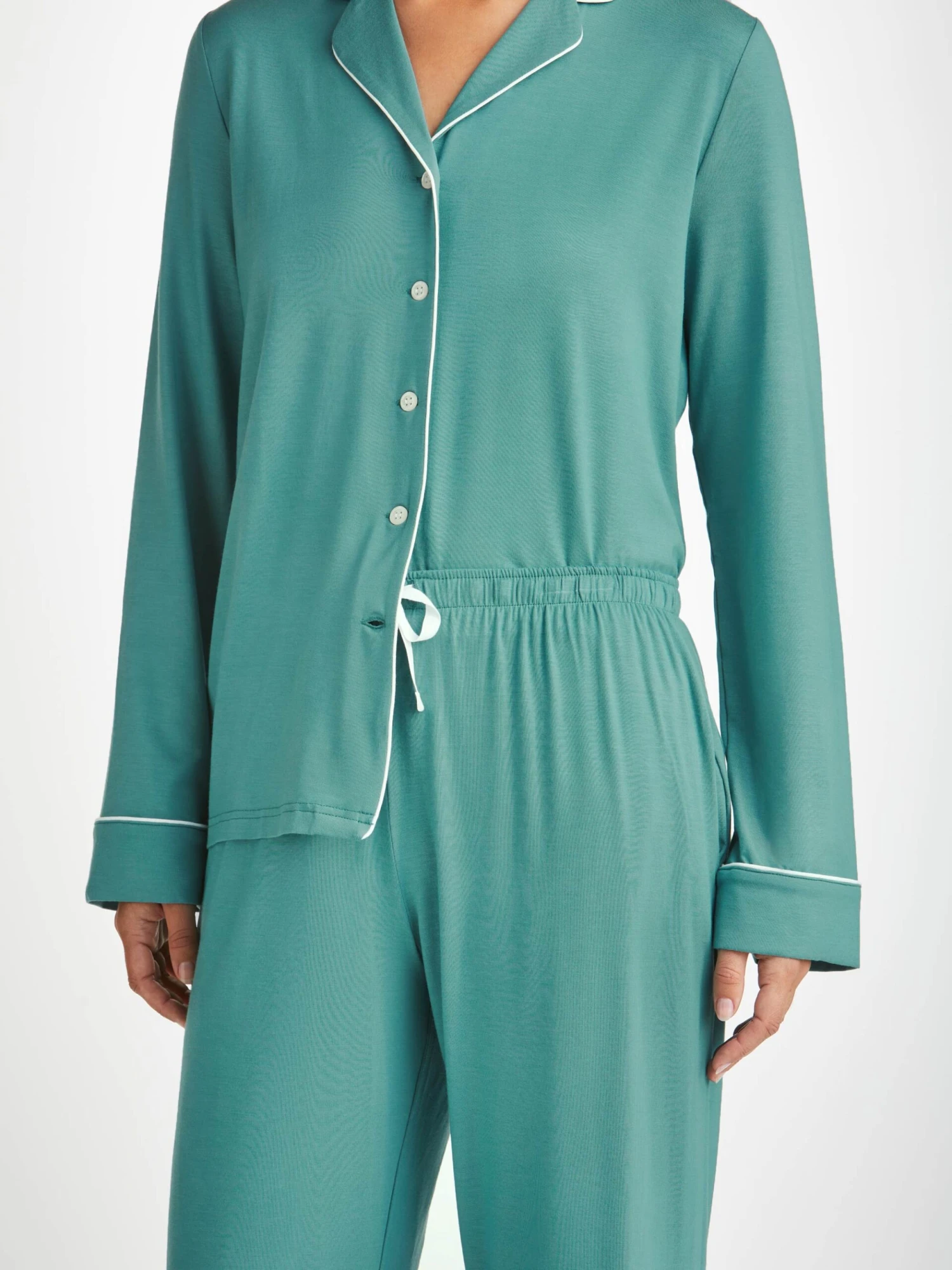 The Lara originated from a desire to make a lighter weight version of our signature Basel fabric. We maintained the super-soft fabric quality and stretch composition – It really is a customer favourite! Not only is the Lara soft, but thermostatic properties in the micro modal fibres allow them to react to changes in temperature and regulate your body heat, making this pyjama perfect to sleep in.
