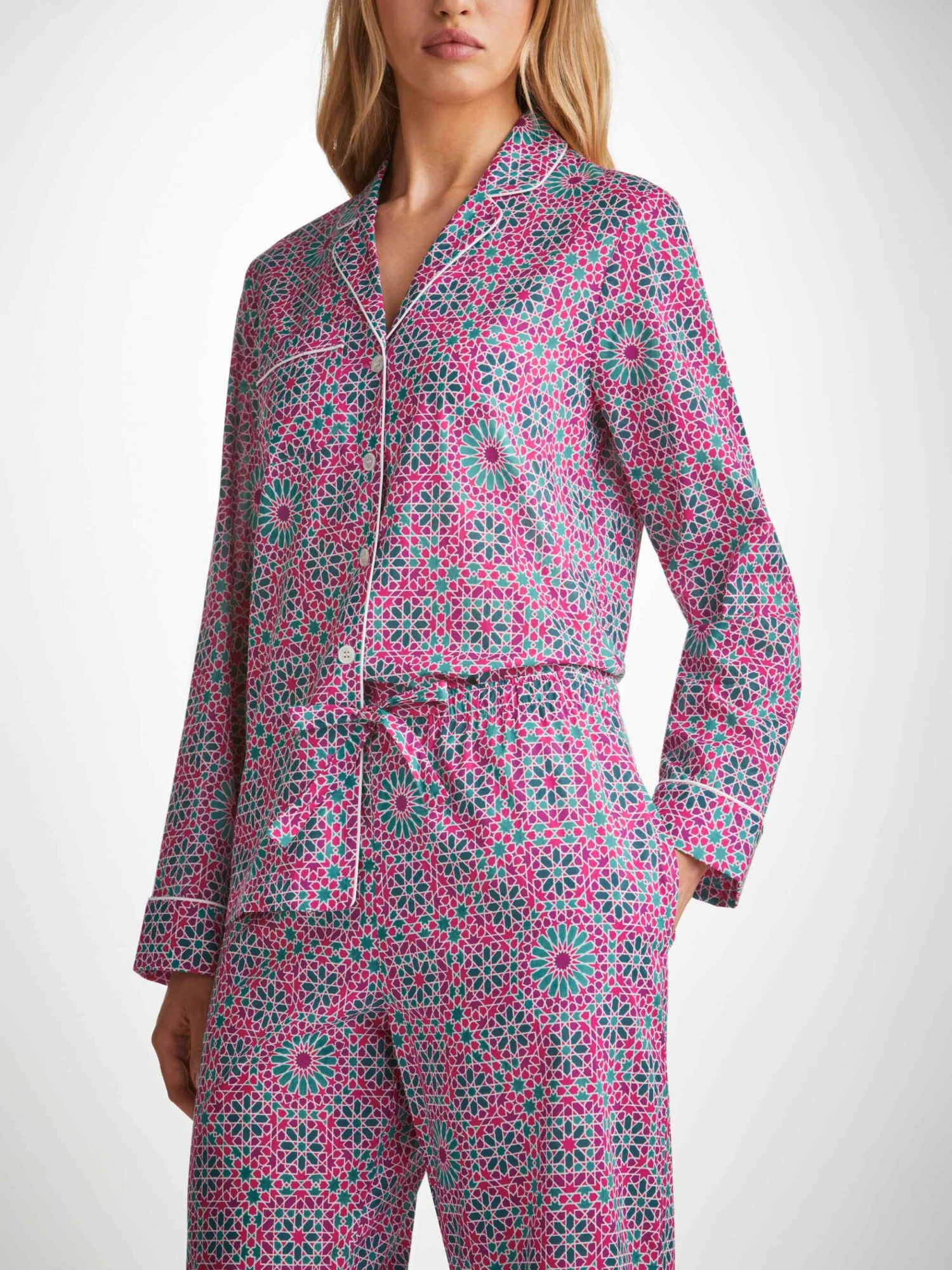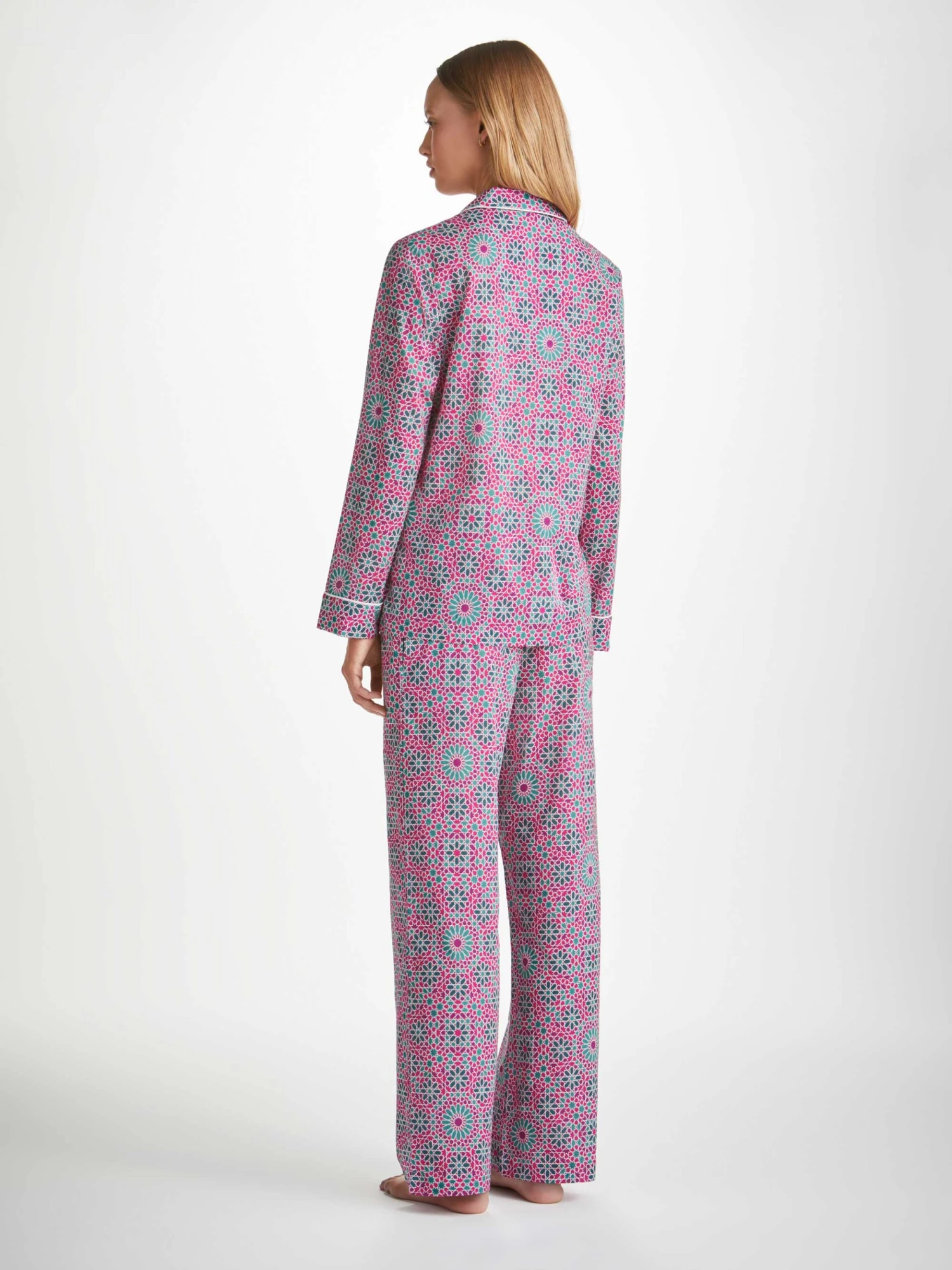 The Ledbury 69 in pink features a geometric print inspired by Arabic mosaic tiles.