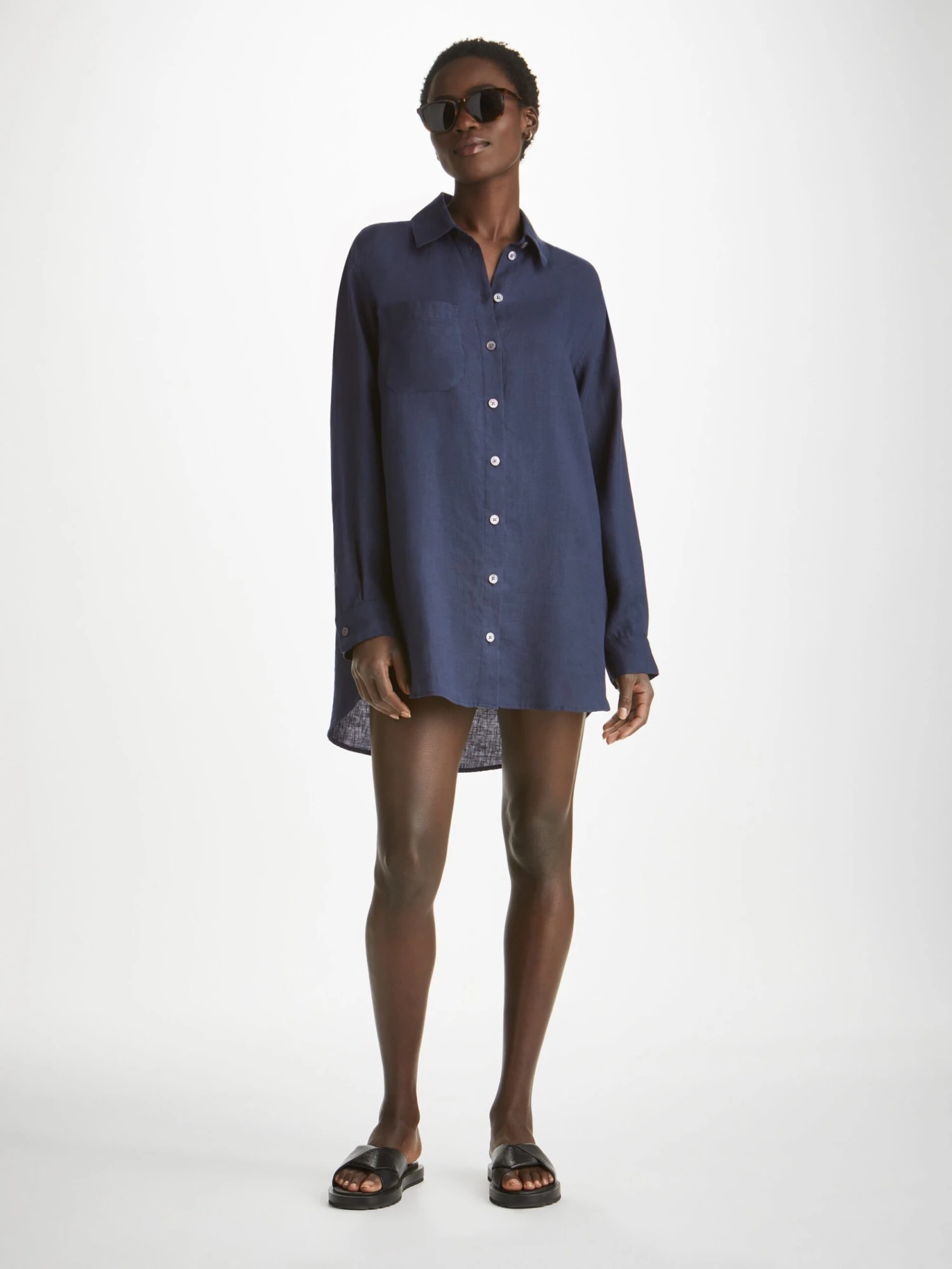 The Sicily shirt features a curved back yoke with a box-pleat for comfort and a curved hem with side vents for ease of movement. We’ve used the classic styling of a button-through front and cuffs, a 2-piece collar and for a modern look, the shirt is designed for an oversized fit for effortless summer chic.
