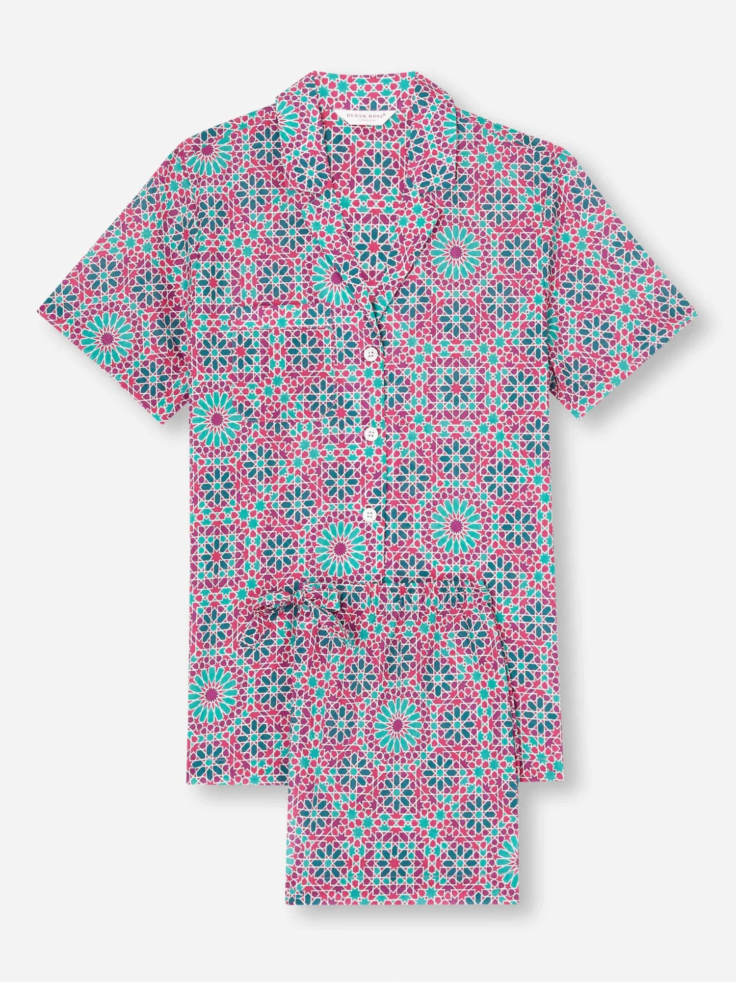 The Ledbury 69 in pink features a geometric print inspired by Arabic mosaic tiles.