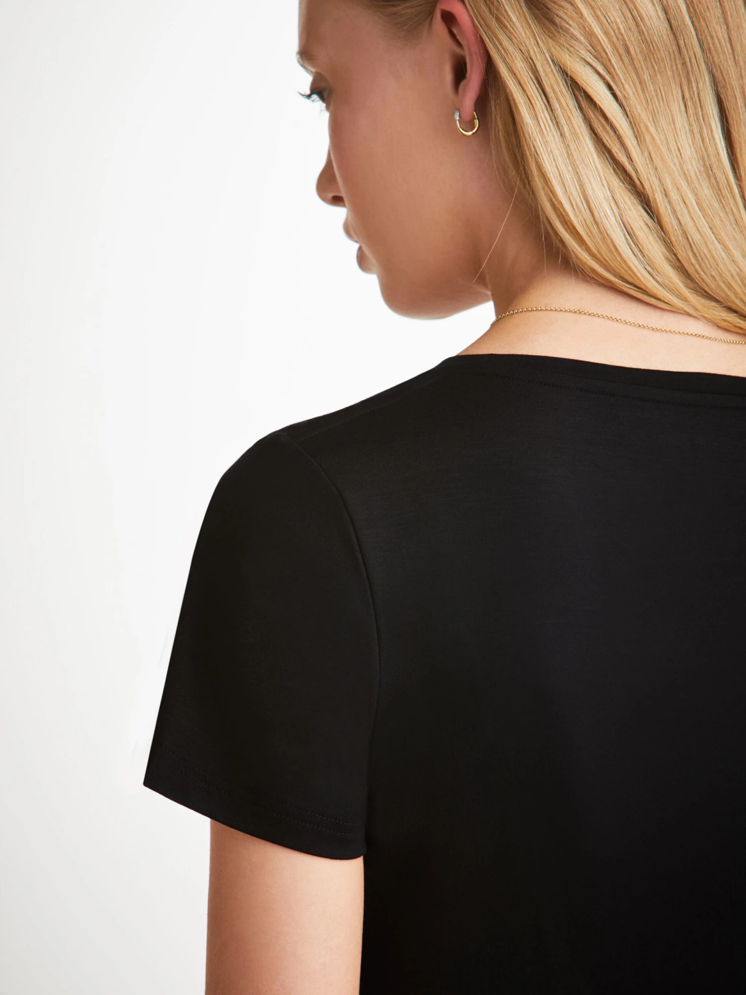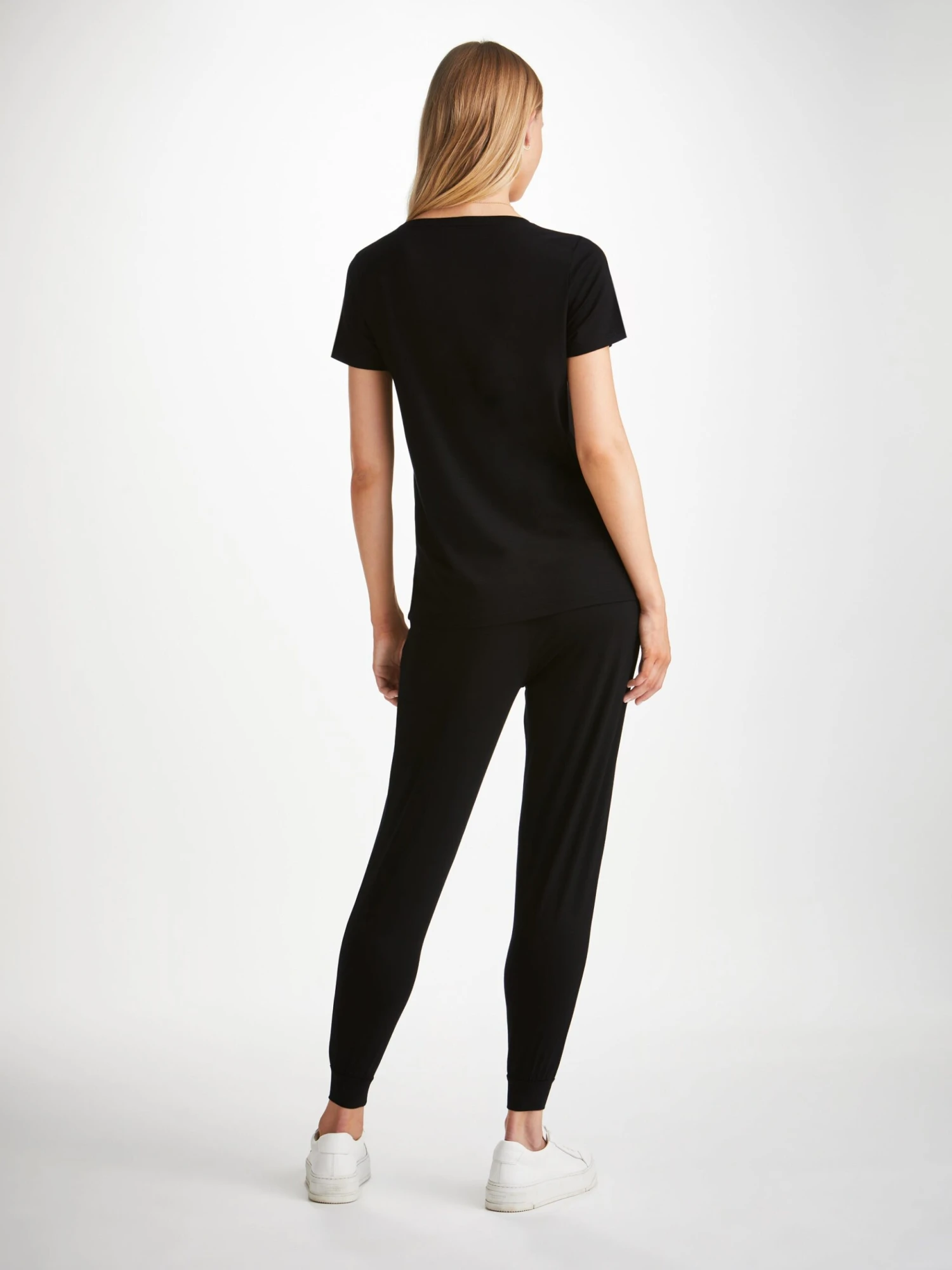 Our women’s black leisure t-shirt is an effortlessly chic sport-luxe essential.