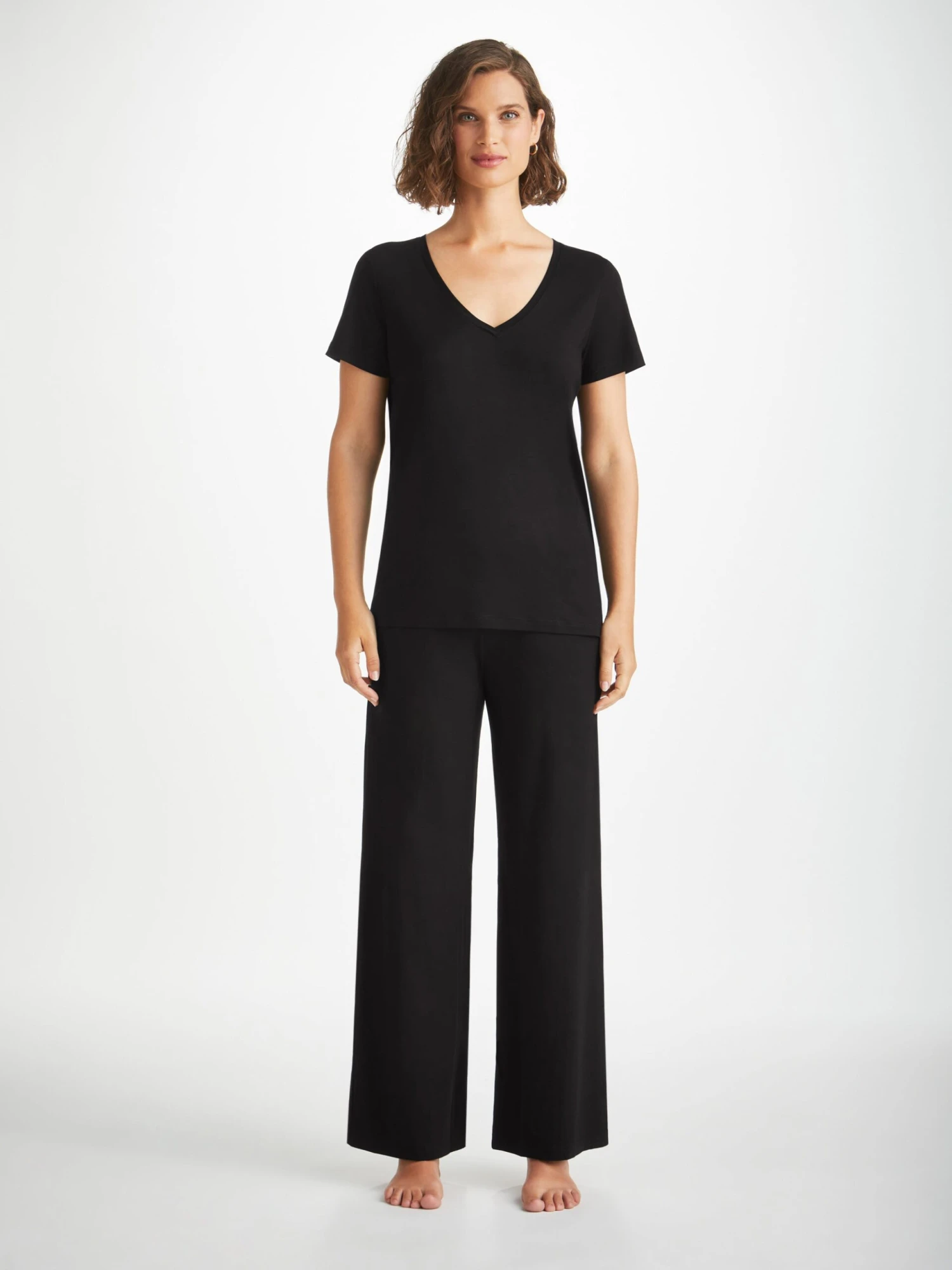 Our Lara t-shirt is a true wardrobe essential and perfect for layering. Seen here in black, it offers a relaxed fit, a soft v-neck and twin needle sleeves and has been designed to sit perfectly underneath all our sweaters and hoodies.