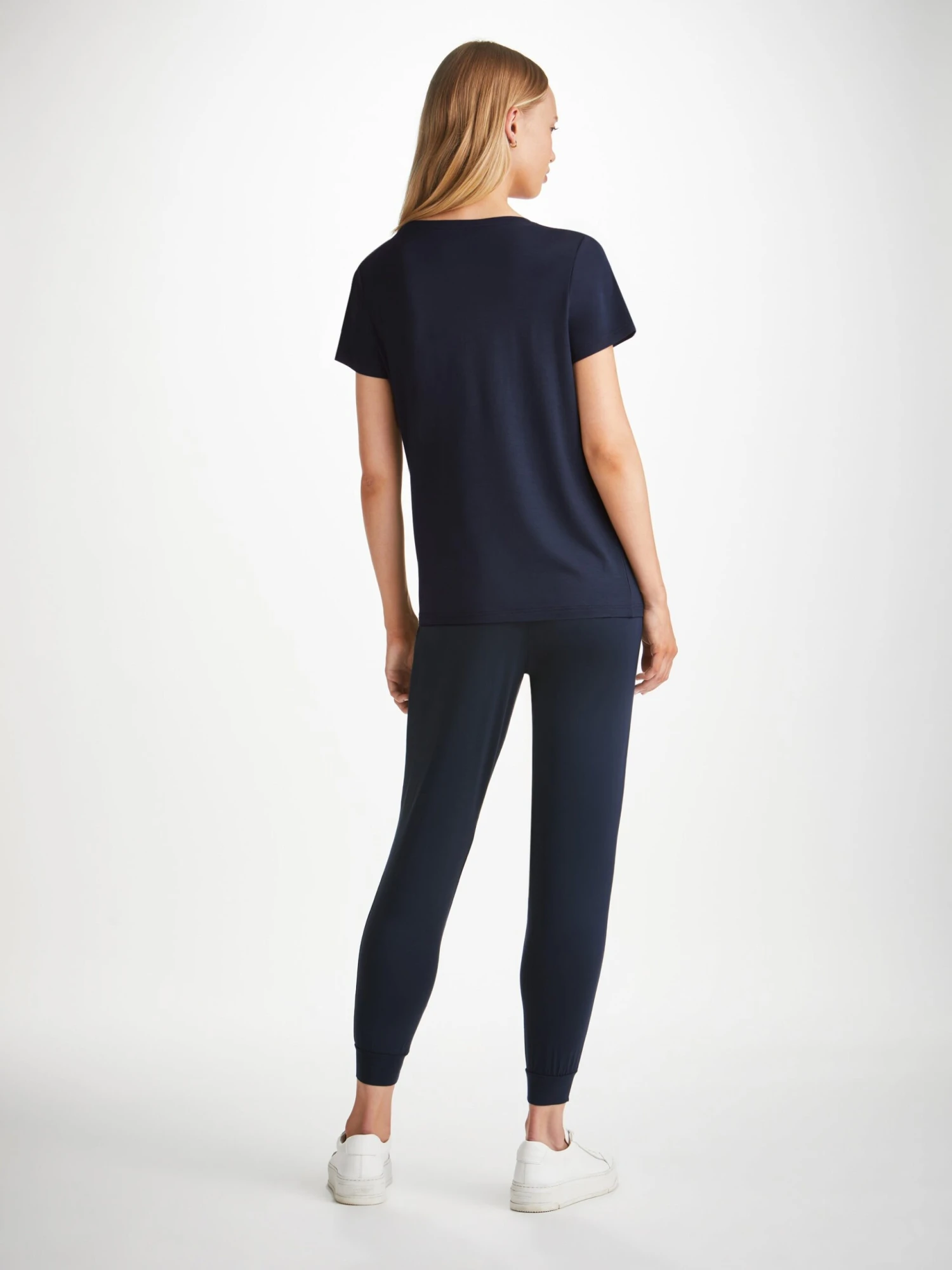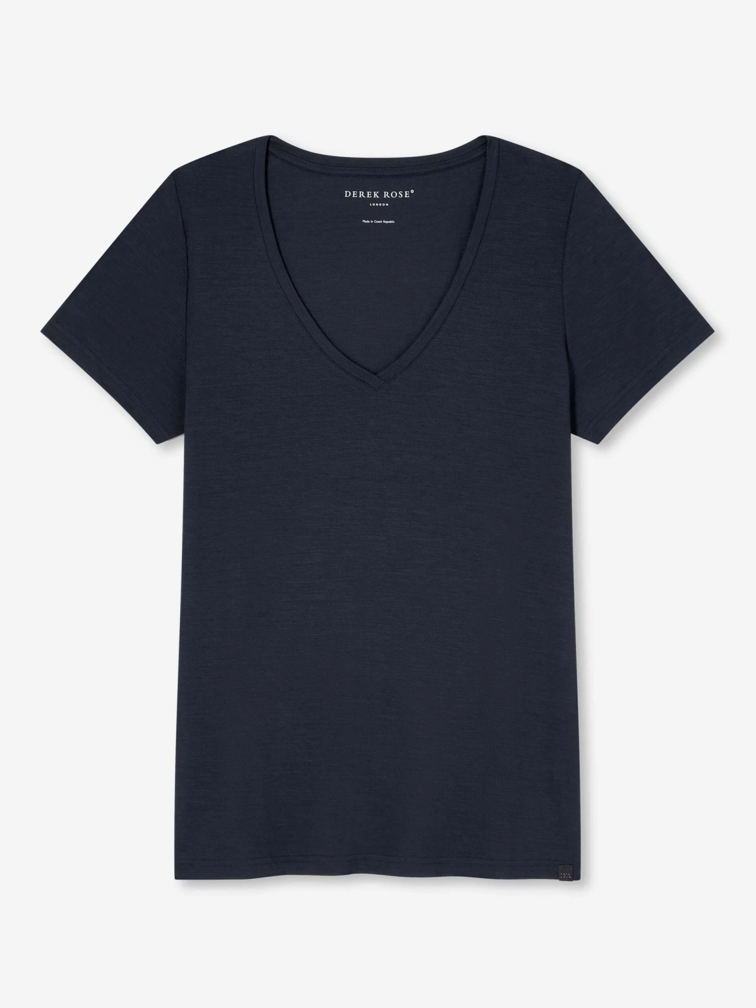 Our Lara t-shirt is a true wardrobe essential and perfect for layering. Available in navy, it offers a relaxed fit, a soft v-neck and twin needle sleeves and has been designed to sit perfectly underneath all our sweaters and hoodies.